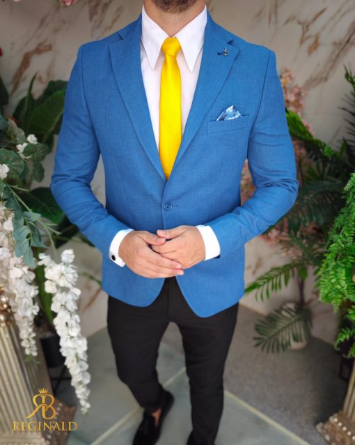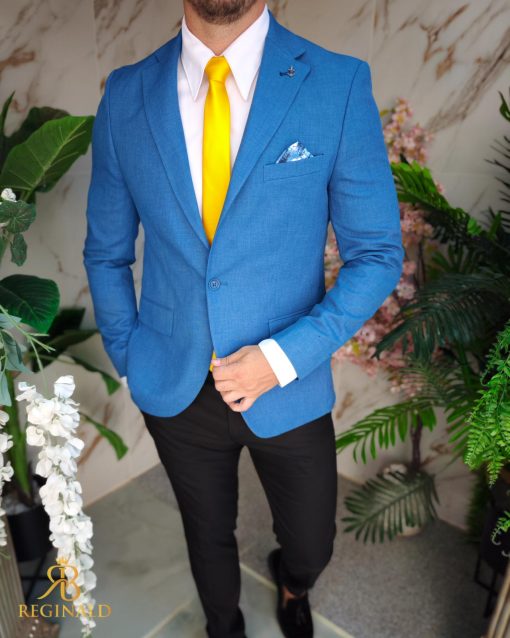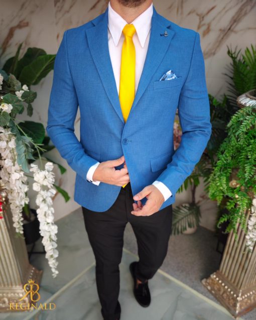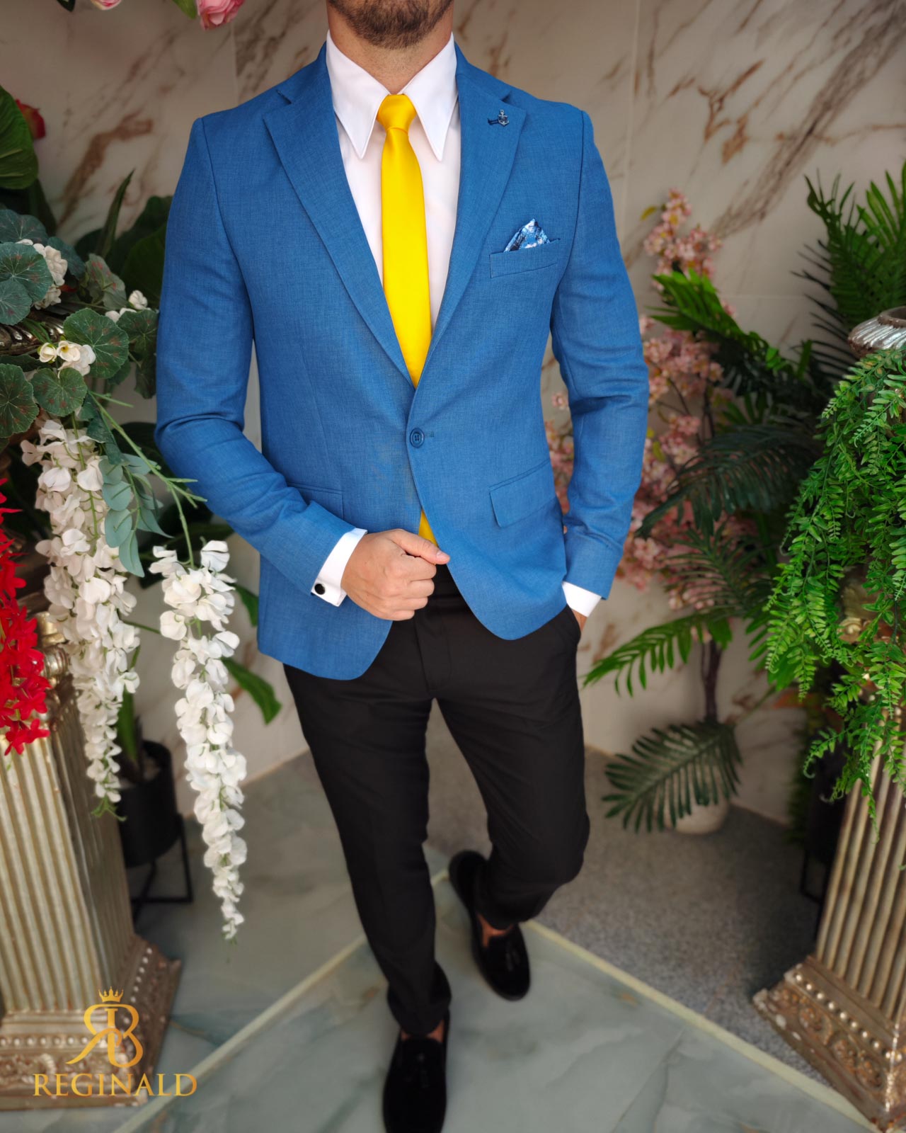 În general, un sacou de bărbați slim fit cu prindere într-un singur nasture poate fi purtat cu o cămașă elegantă și pantaloni asortați, pentru un aspect elegant.