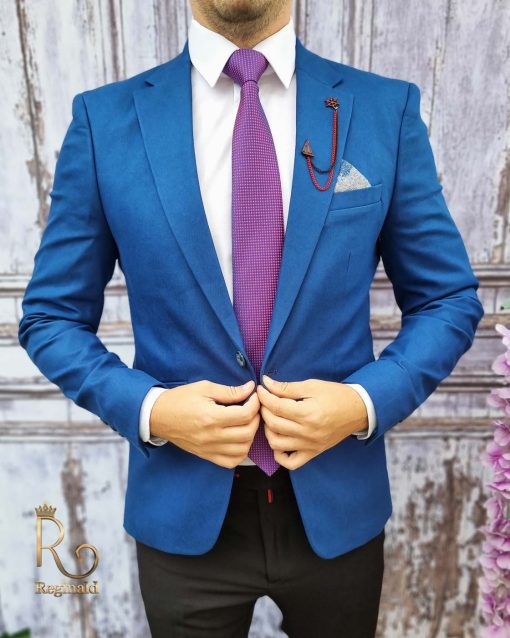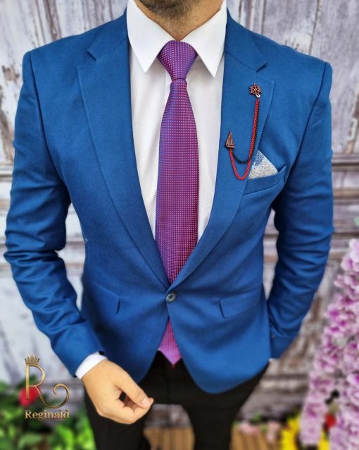 Cravata cu batista, bleumarin in patratele albastre - CV522