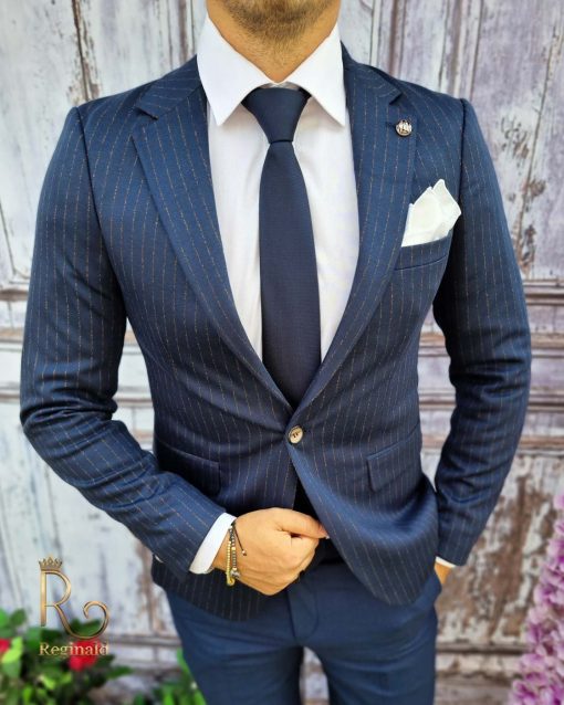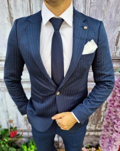 Sacou de barbati, Slim-Fit, bleumarin in dungi – SC428