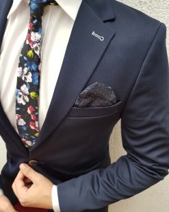 Set Cravata si batista, Turcoaz cu model - CV1074