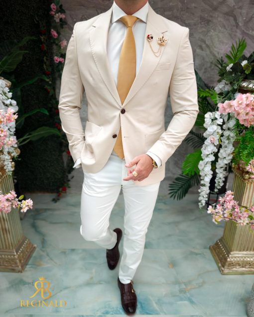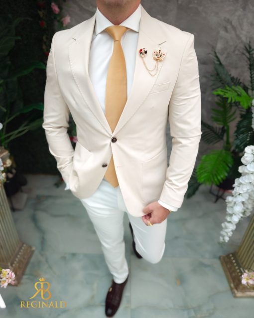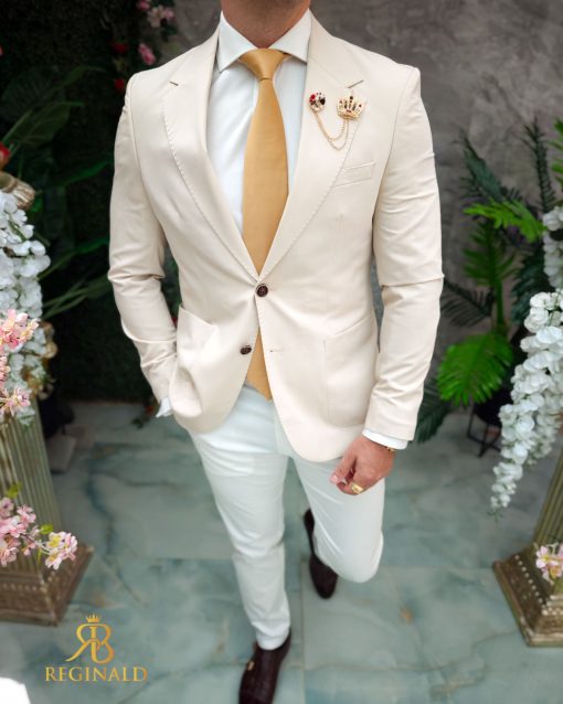 Lanț metalic pentru sacou, Trompeta cu pietre albe, Auriu- LT537