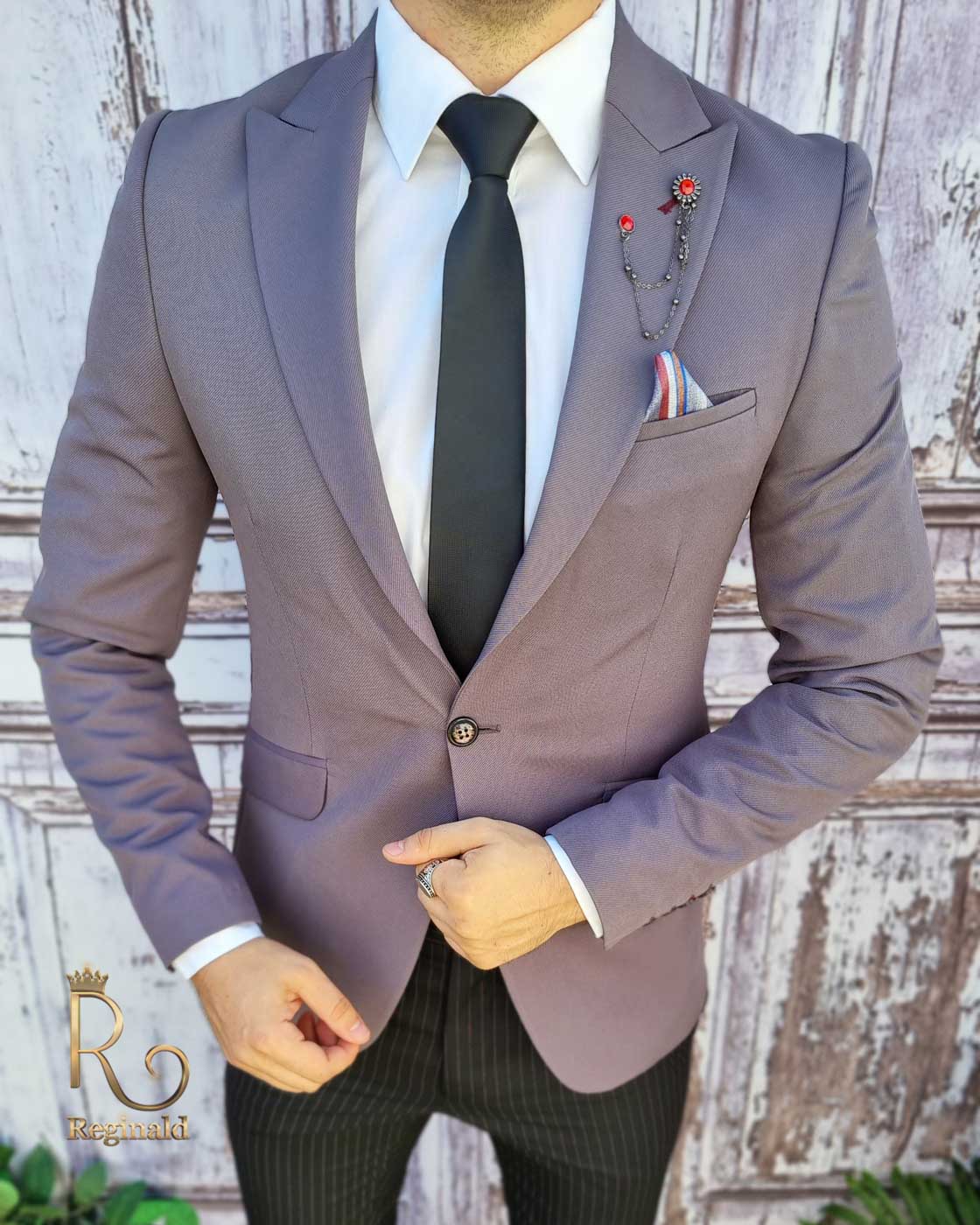Set papion mov amplu cu butoni, brosa, batista - P91