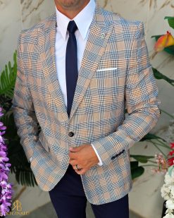 Un sacou de bărbați slim fit este un sacou de tipul croit pentru a fi mai ajustat pe corp, oferind o imagine mai modernă și elegantă. Aceste sacouri sunt de obicei realizate din materiale ușoare, cum ar fi poly-vascoza, și sunt concepute să fie purtate în contexte mai formale sau semi-formale.