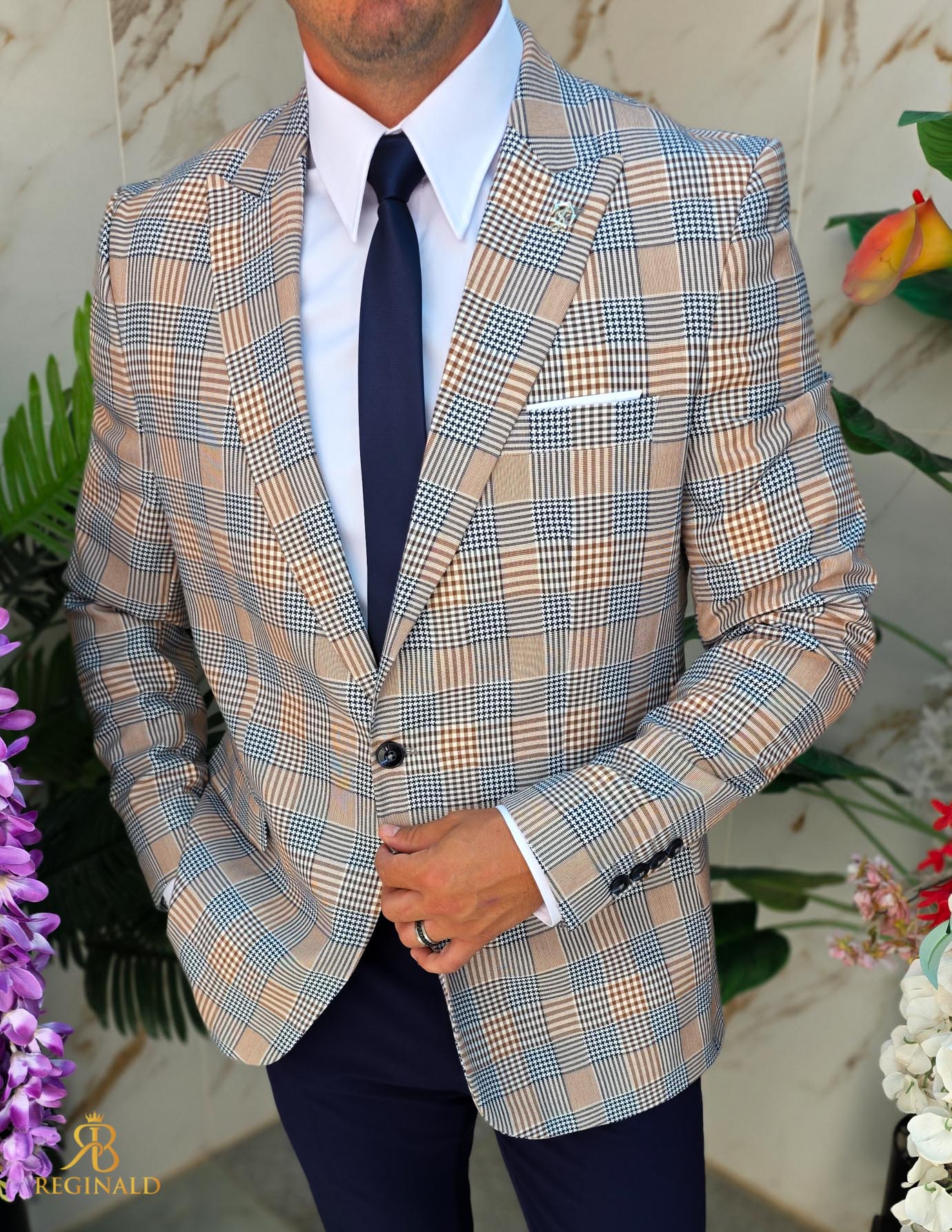 În general, un sacou de bărbați slim fit cu prindere într-un singur nasture poate fi purtat cu o cămașă elegantă și pantaloni asortați, pentru un aspect elegant.