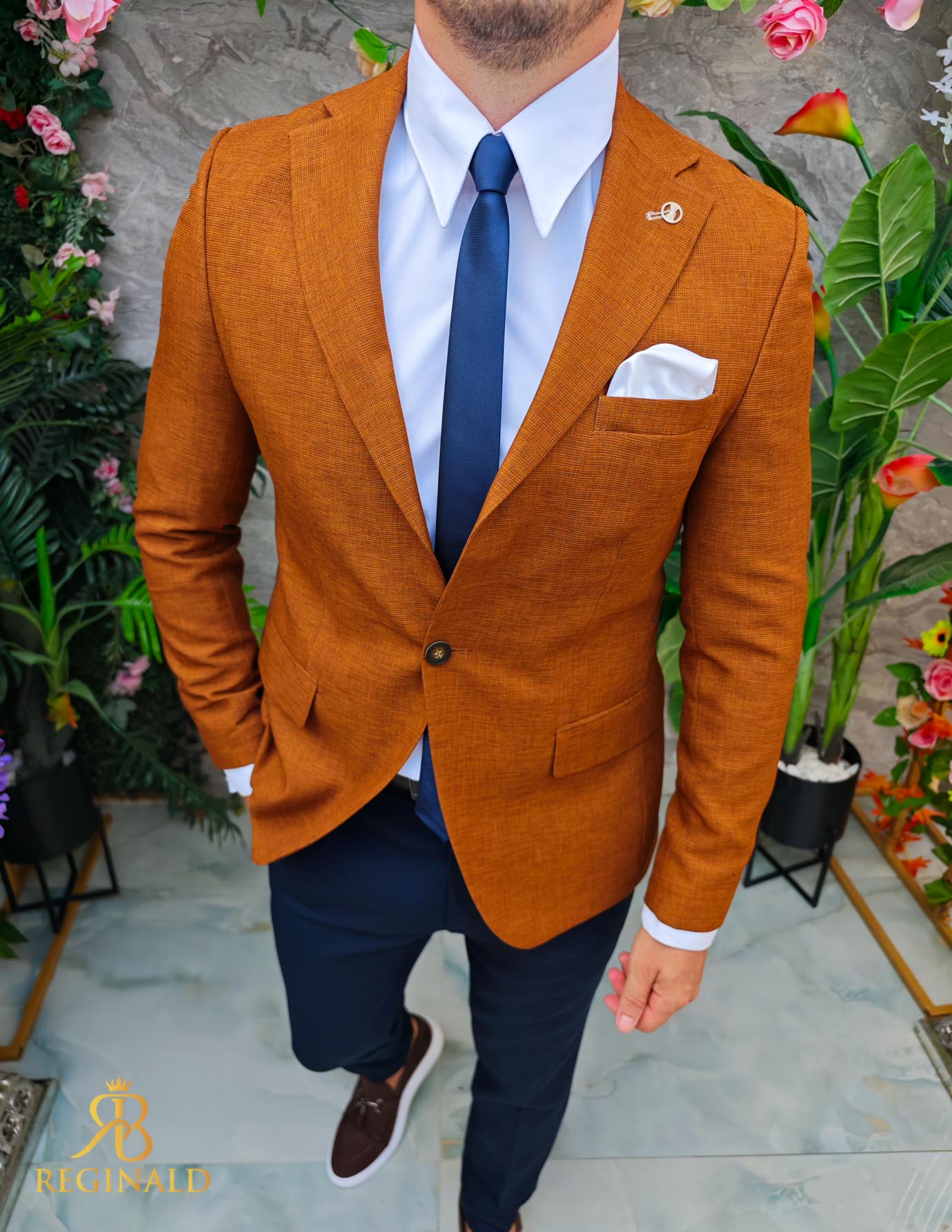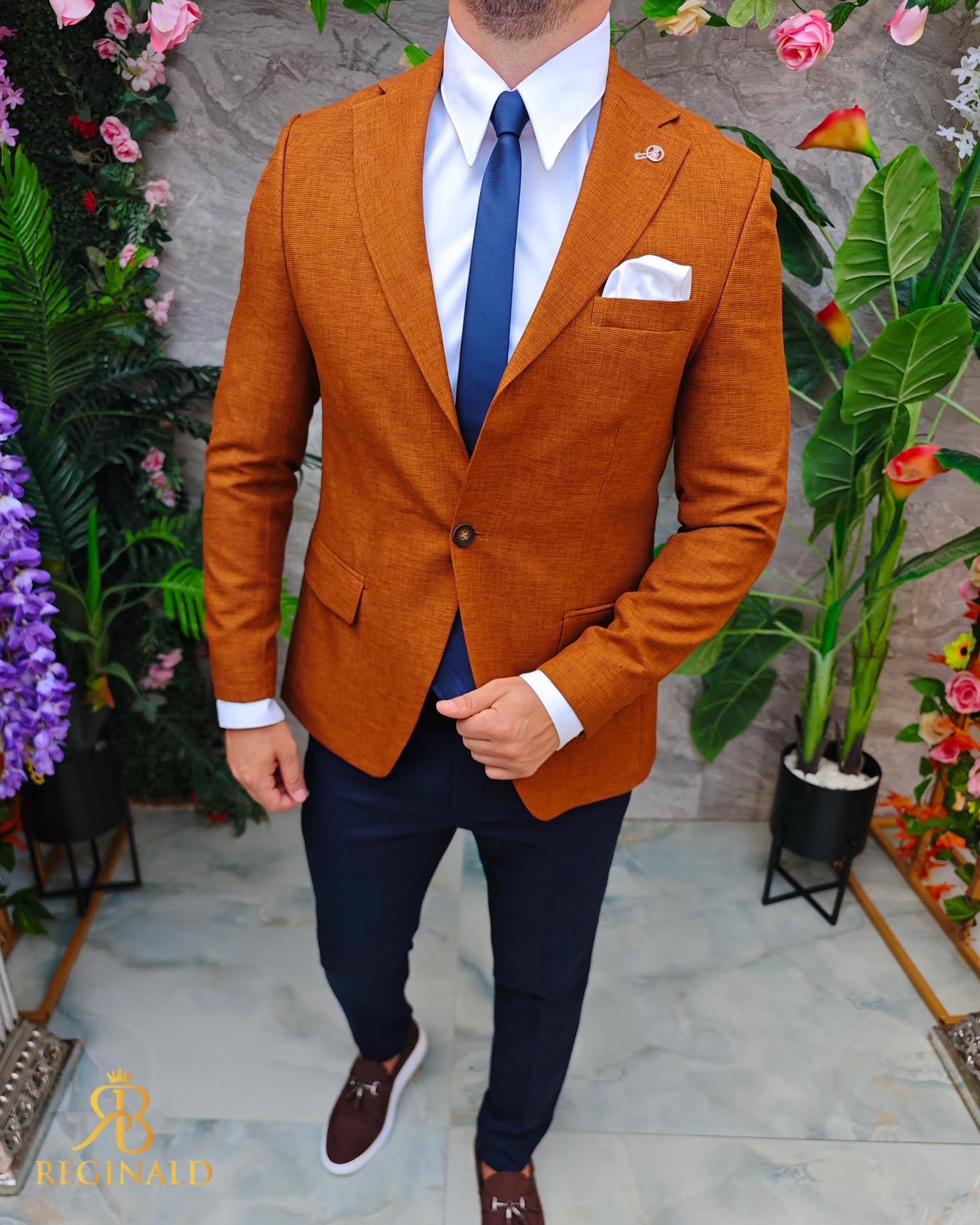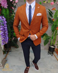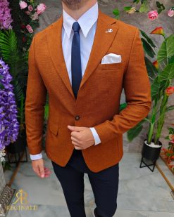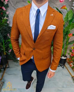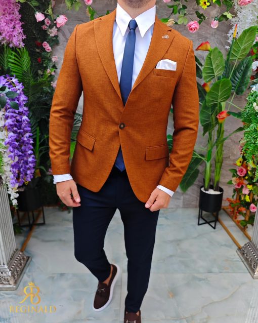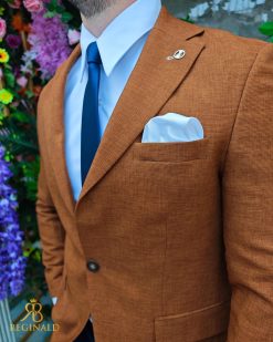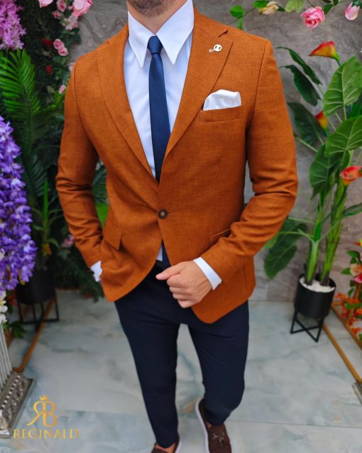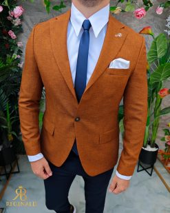 Sacou de bărbați, Slim Fit, Maro caramiziu, textura in- SC961