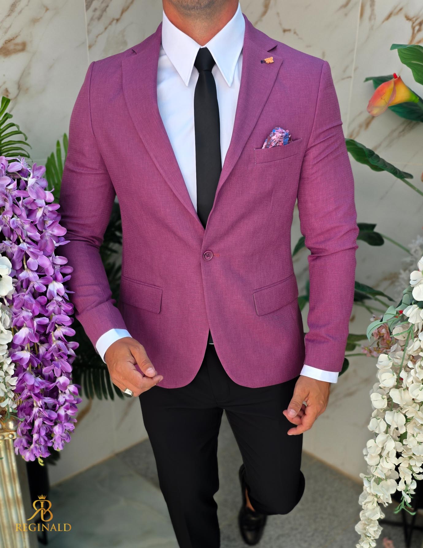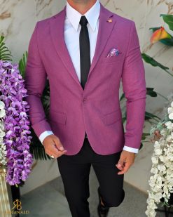 În general, un sacou de bărbați slim fit cu prindere într-un singur nasture poate fi purtat cu o cămașă elegantă și pantaloni asortați, pentru un aspect elegant.