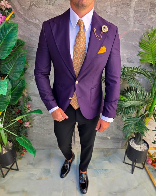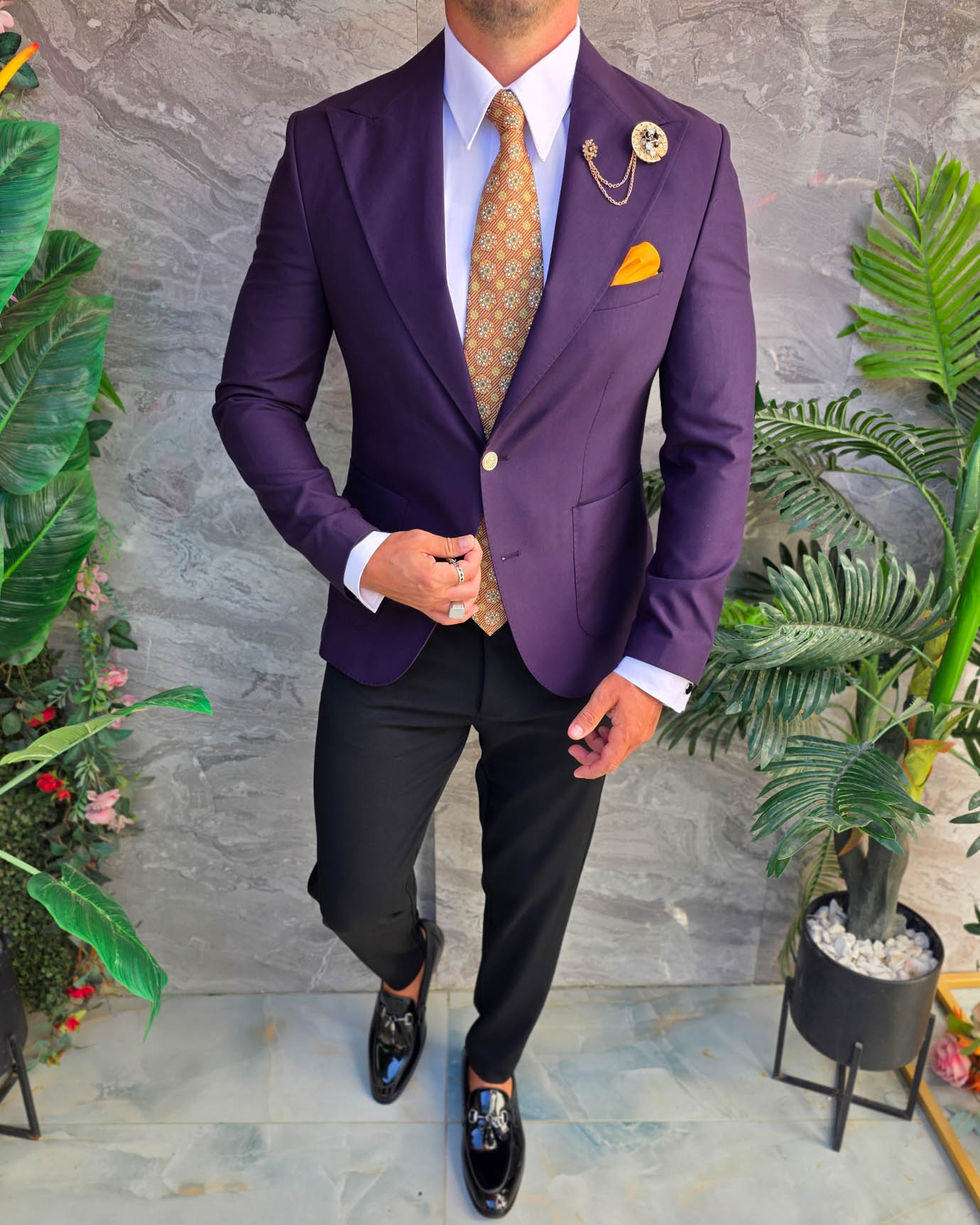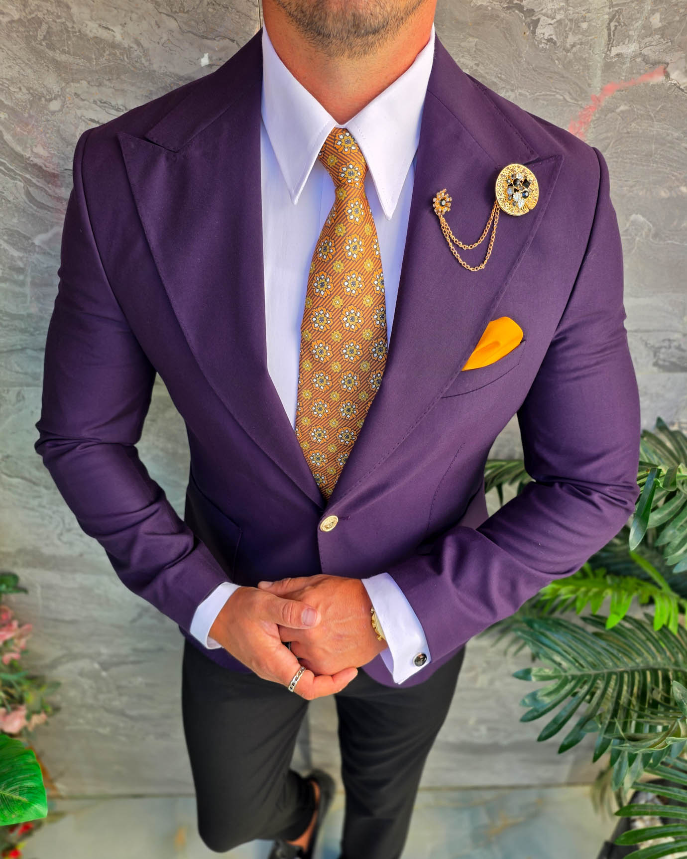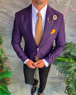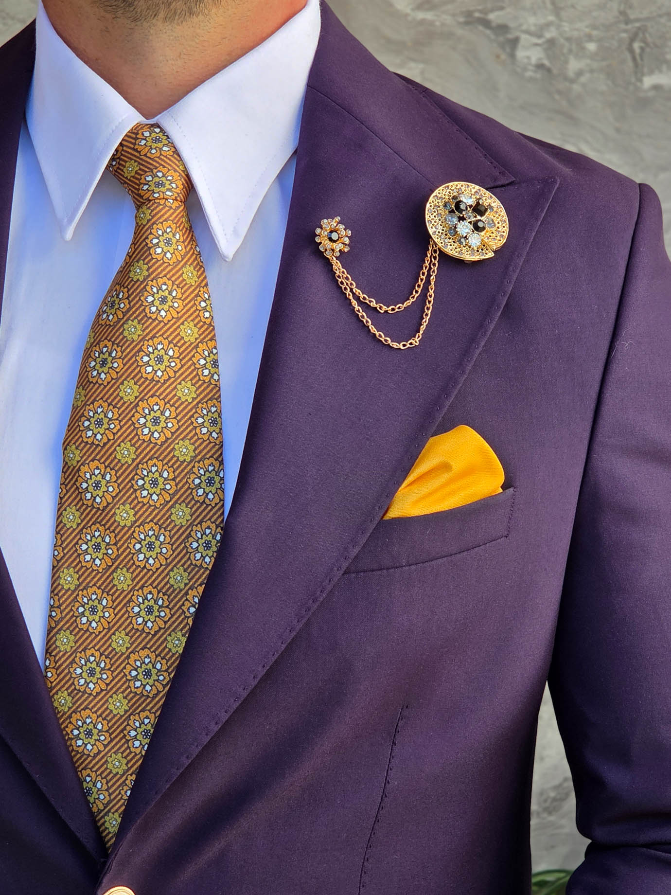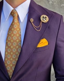 Set papion mov amplu cu butoni, brosa, batista - P91