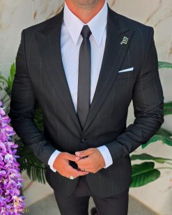 În general, un sacou de bărbați slim fit cu prindere într-un singur nasture poate fi purtat cu o cămașă elegantă și pantaloni asortați, pentru un aspect elegant.