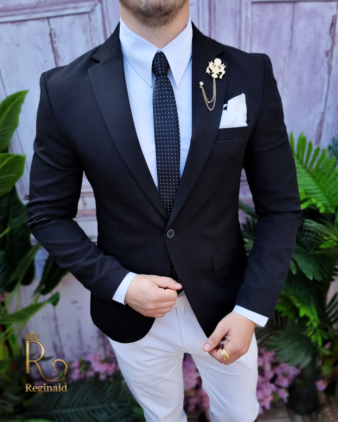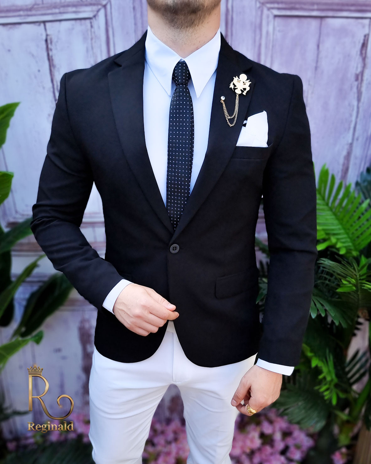 În general, un sacou de bărbați slim fit cu prindere într-un singur nasture poate fi purtat cu o cămașă elegantă și pantaloni asortați, pentru un aspect elegant.