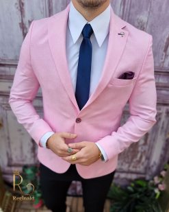 În general, un sacou de bărbați slim fit cu prindere într-un singur nasture poate fi purtat cu o cămașă elegantă și pantaloni asortați, pentru un aspect elegant.