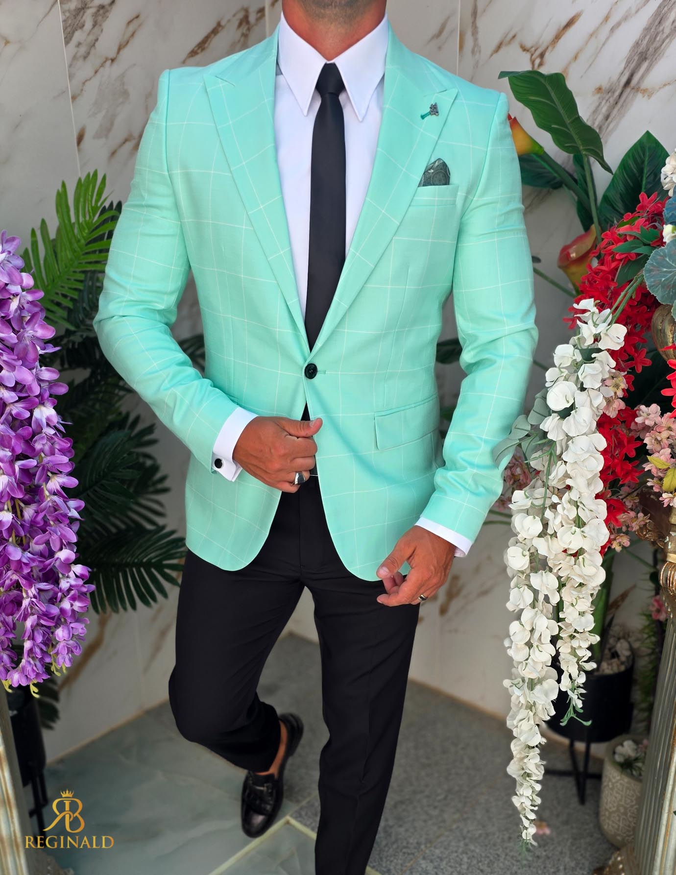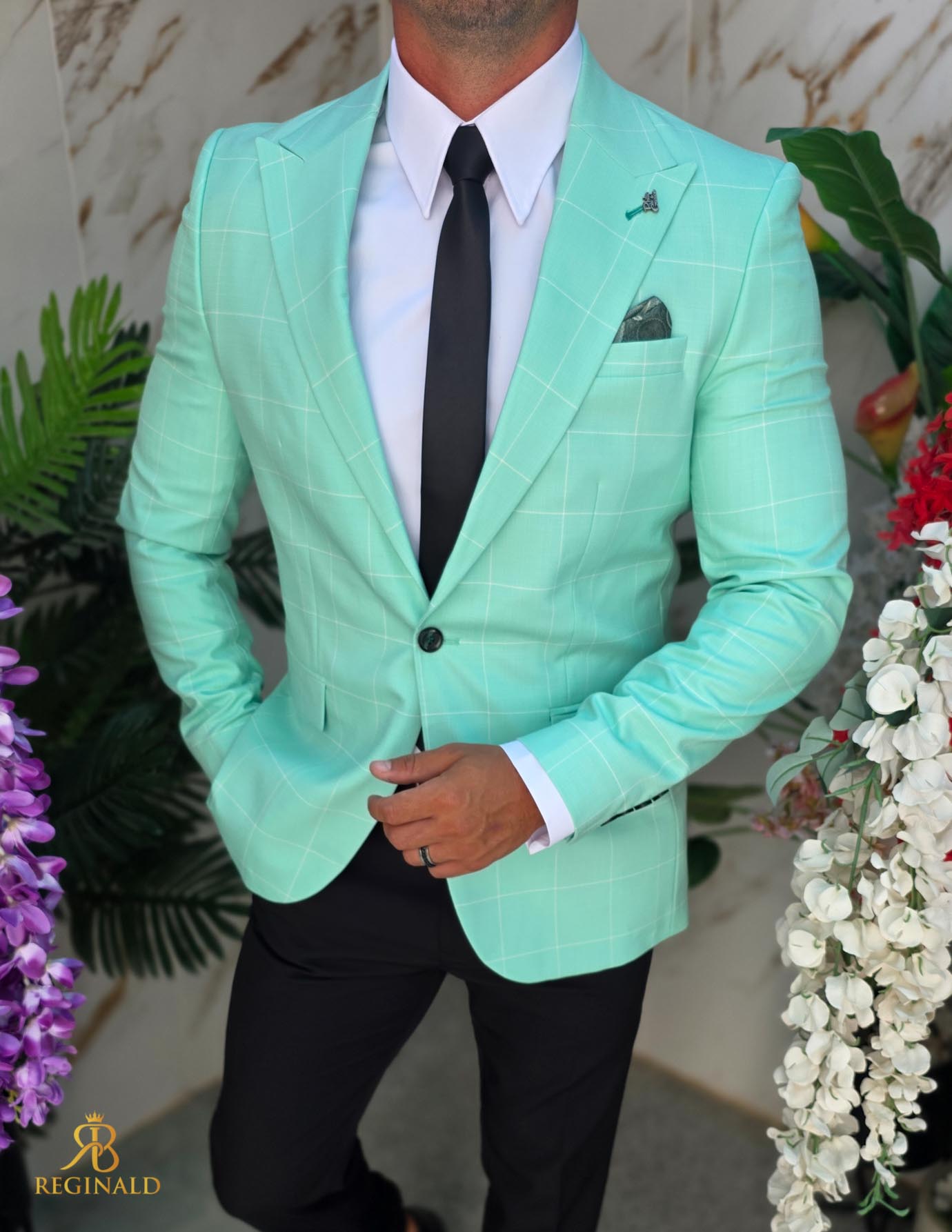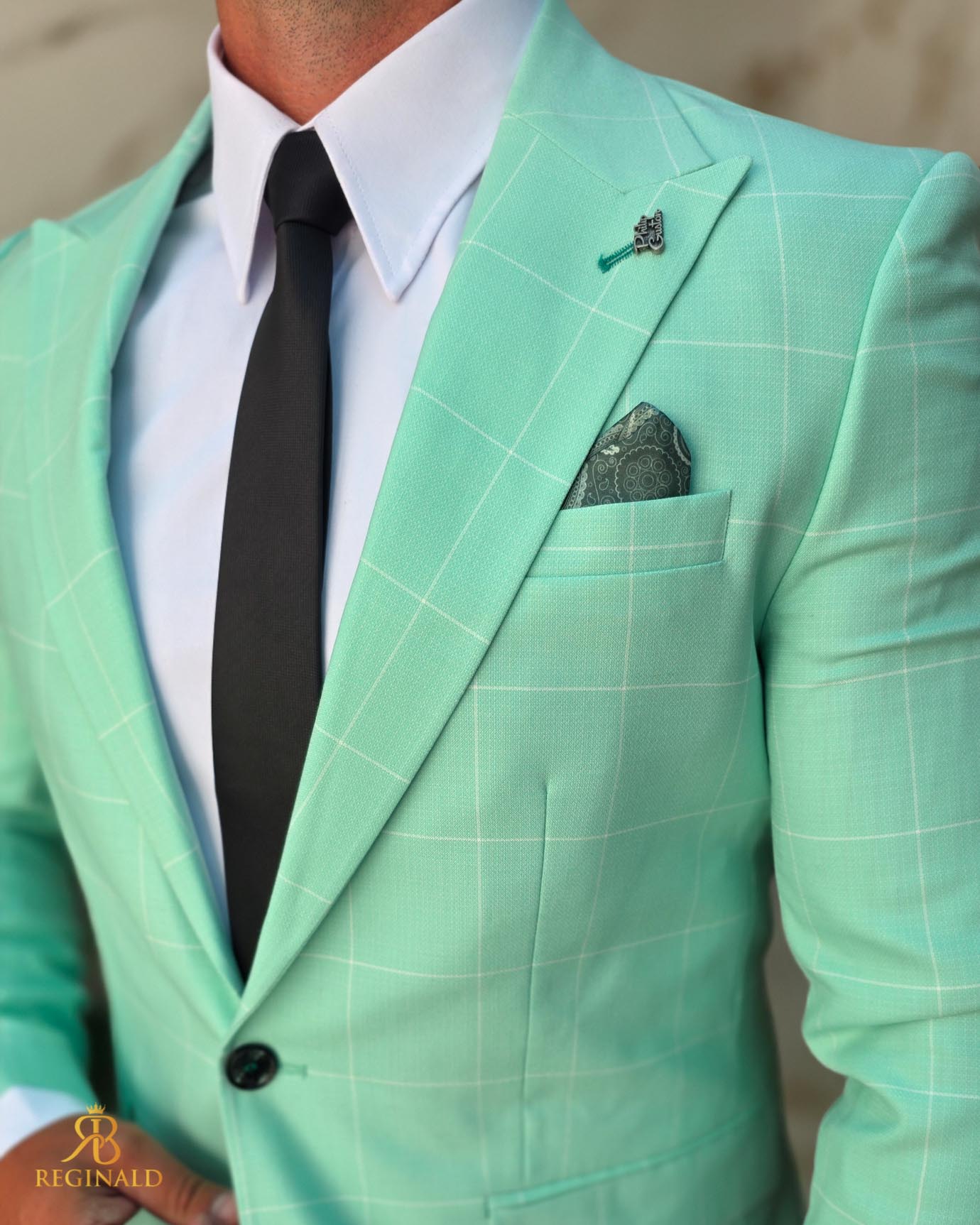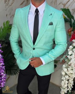 Sacou de bărbați, Slim Fit, Verde deschis in carouri- SC1067