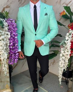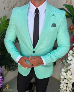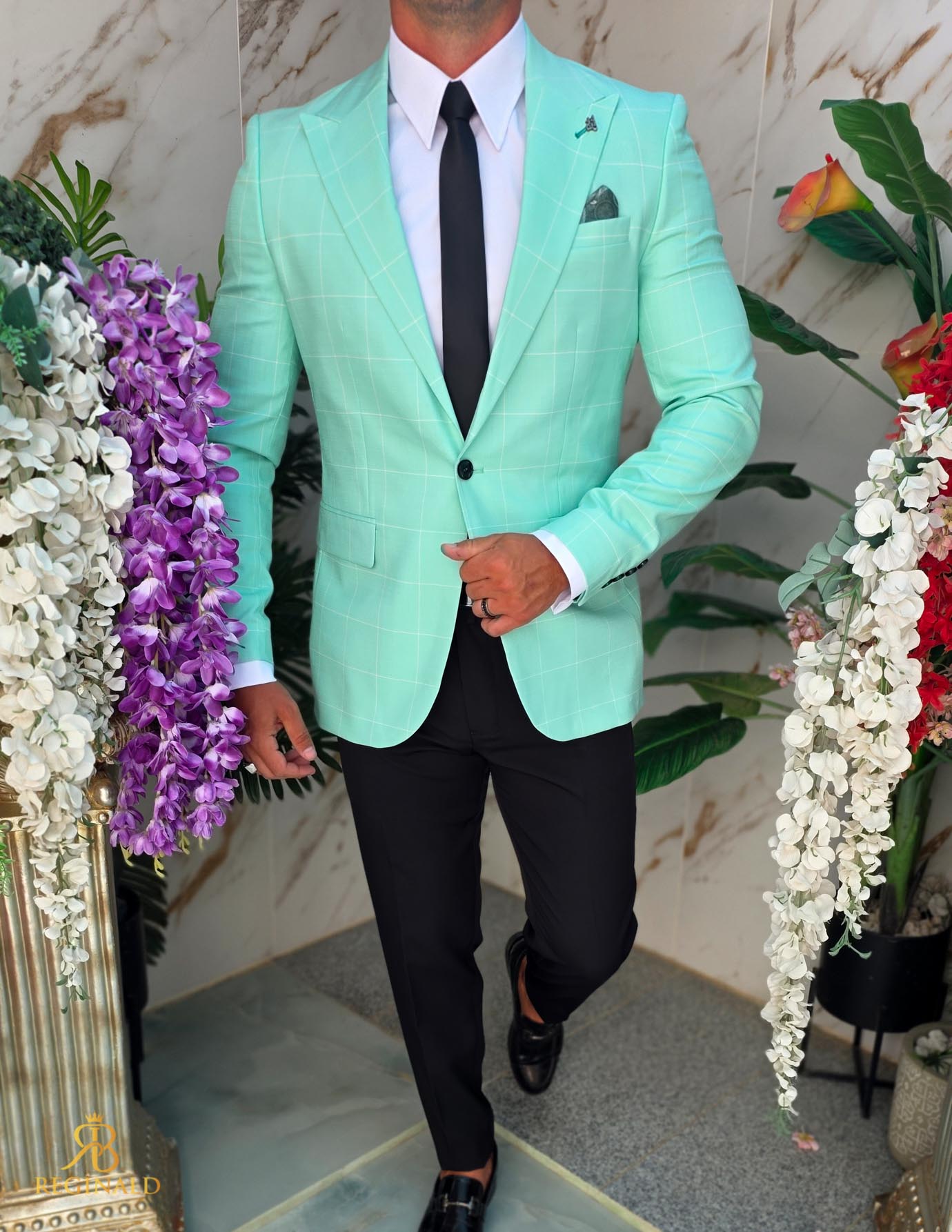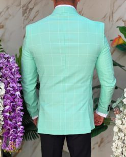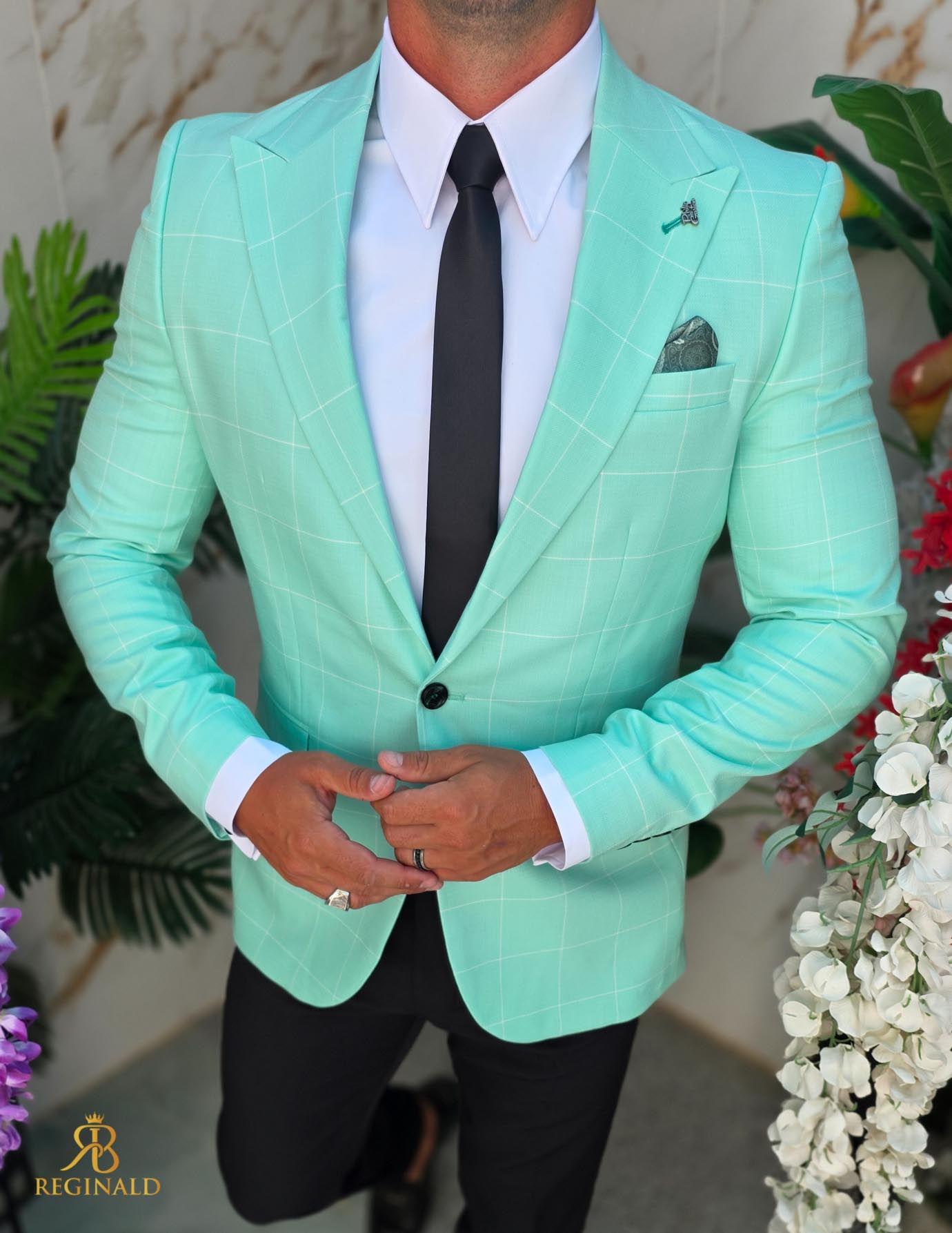 Sacou de bărbați, Slim Fit, Verde deschis in carouri- SC1067