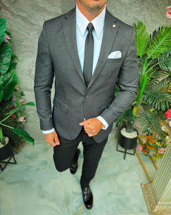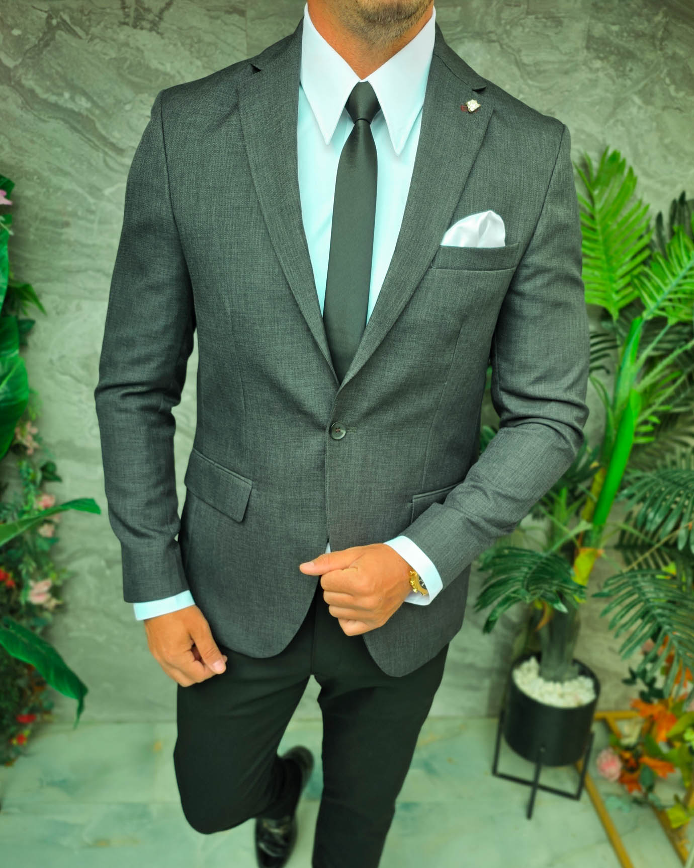 Sacou de bărbați, Slim Fit, verde kaki, textura in- SC952