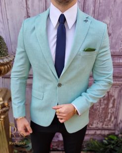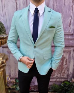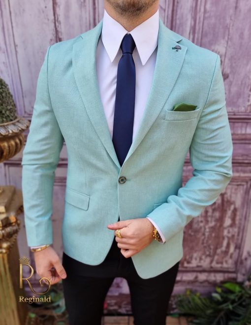 În general, un sacou de bărbați slim fit cu prindere într-un singur nasture poate fi purtat cu o cămașă elegantă și pantaloni asortați, pentru un aspect elegant.