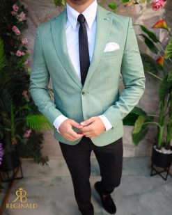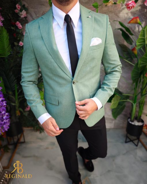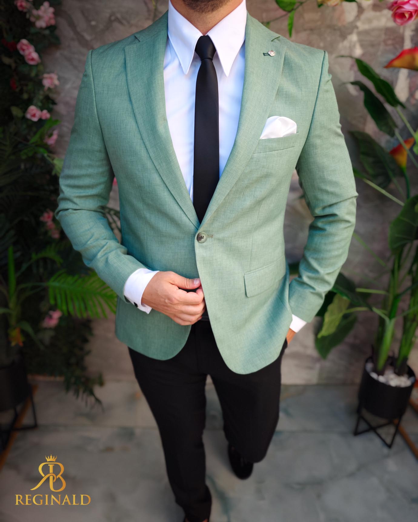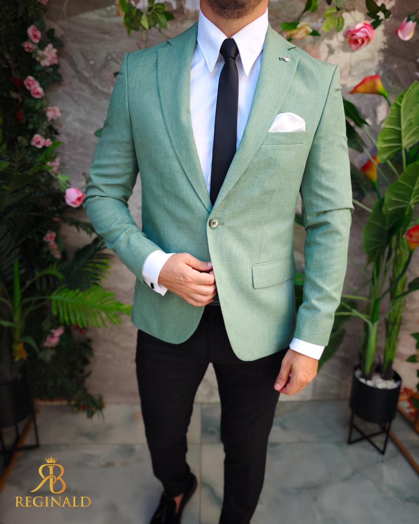 Sacou de bărbați, Slim Fit, Verde pal, textura in- SC955