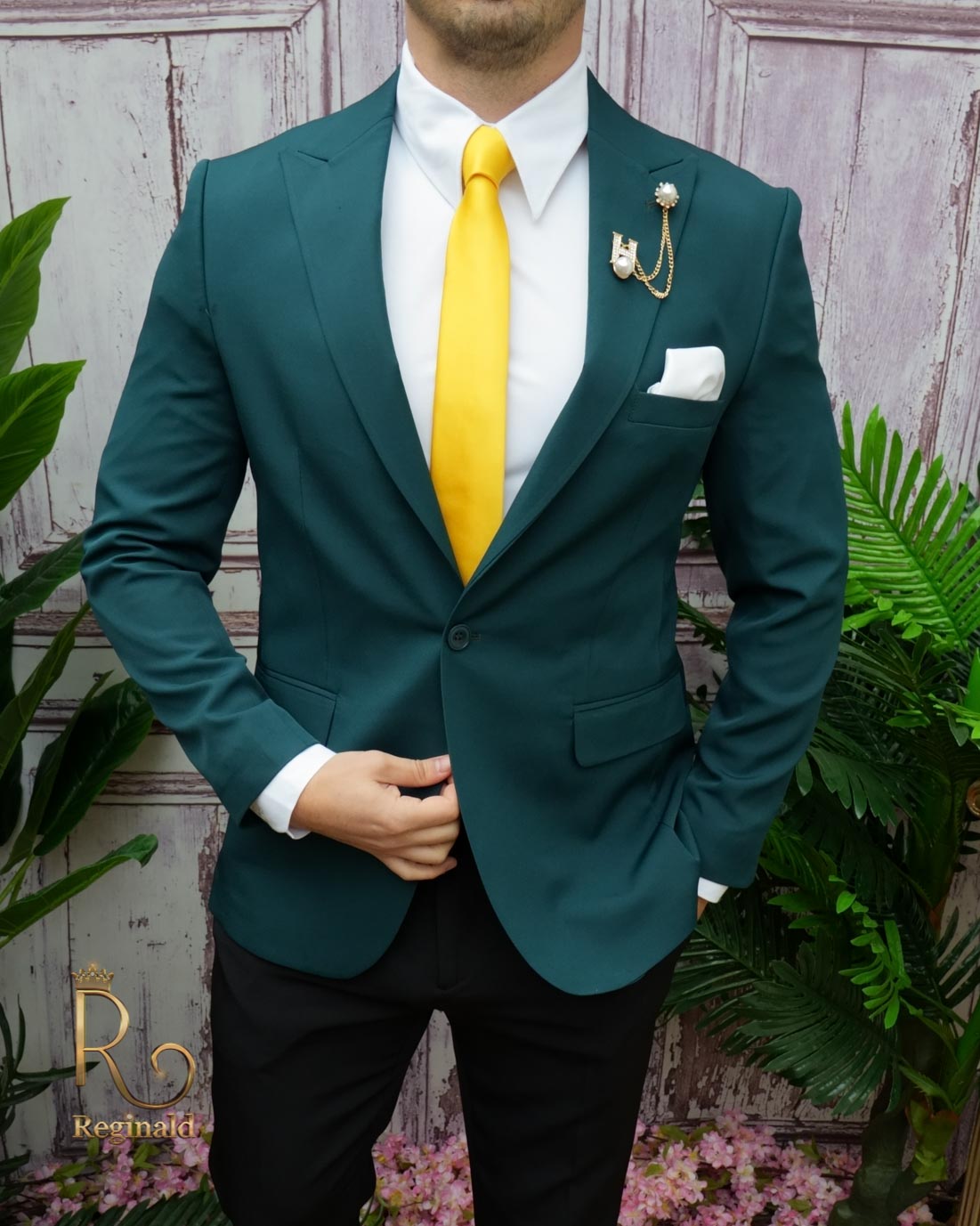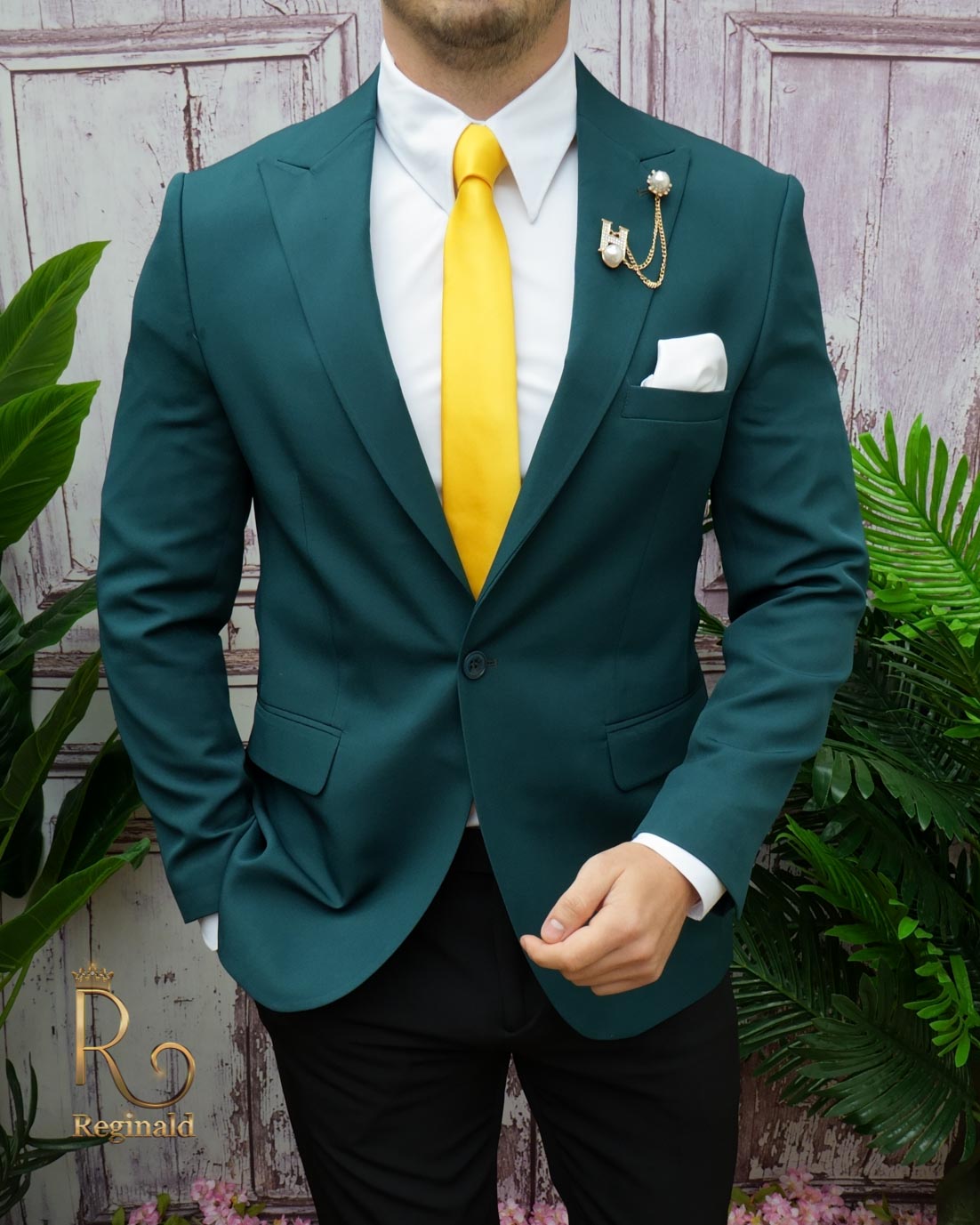 În general, un sacou de bărbați slim fit cu prindere într-un singur nasture poate fi purtat cu o cămașă elegantă și pantaloni asortați, pentru un aspect elegant.