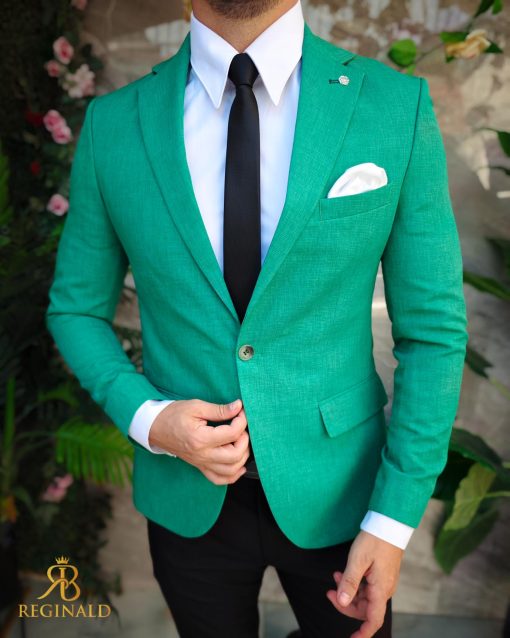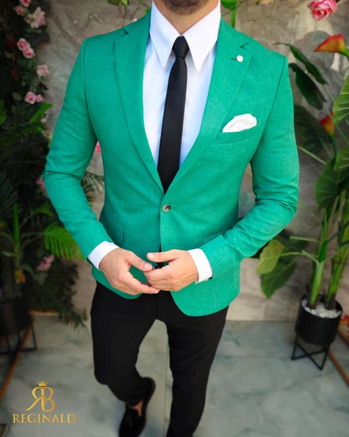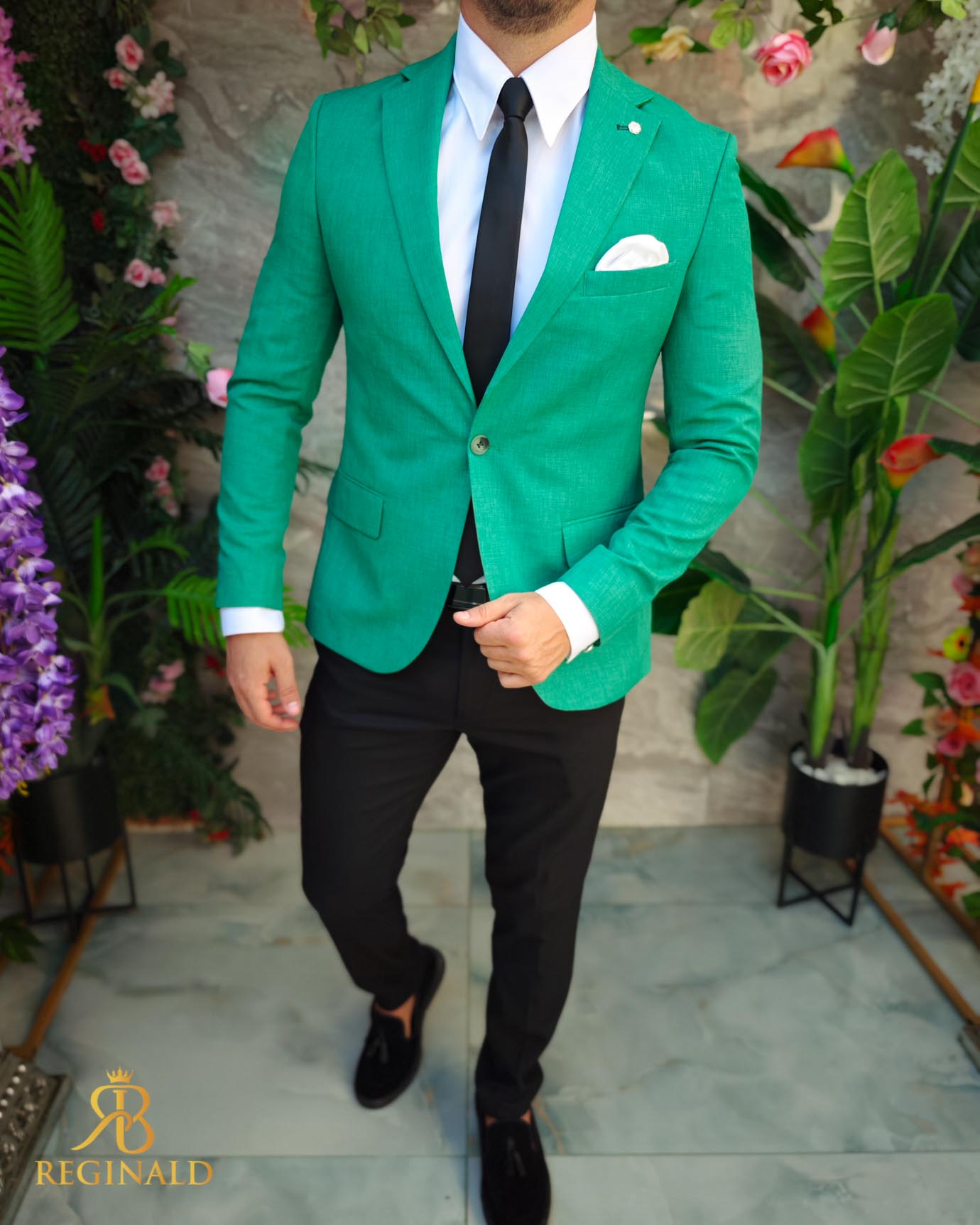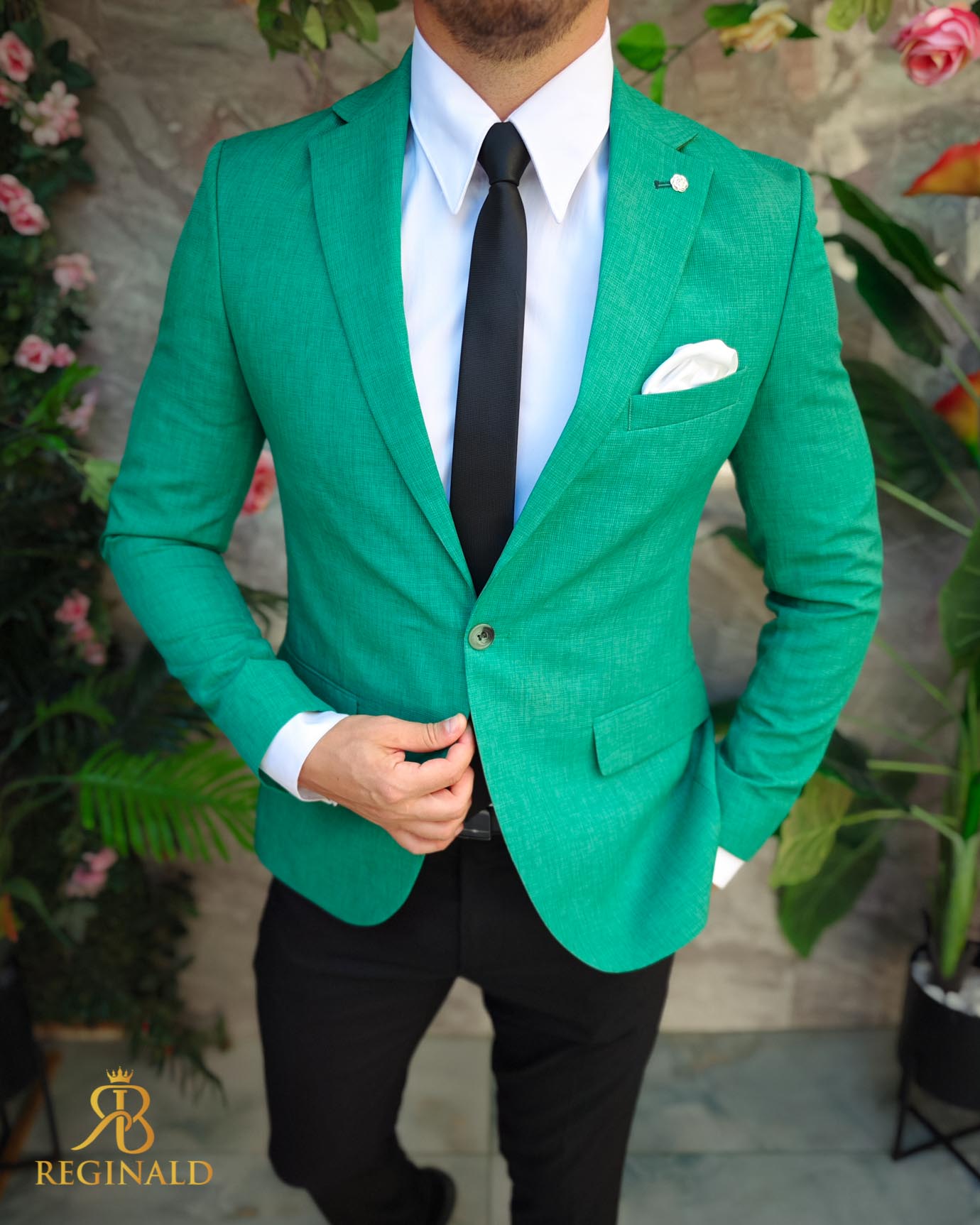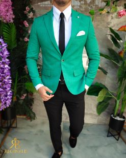În general, un sacou de bărbați slim fit cu prindere într-un singur nasture poate fi purtat cu o cămașă elegantă și pantaloni asortați, pentru un aspect elegant.