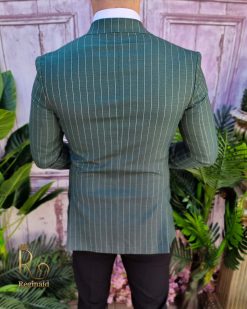 Sacou de bărbați verde in dungi, Slim Fit, double breasted – SC803