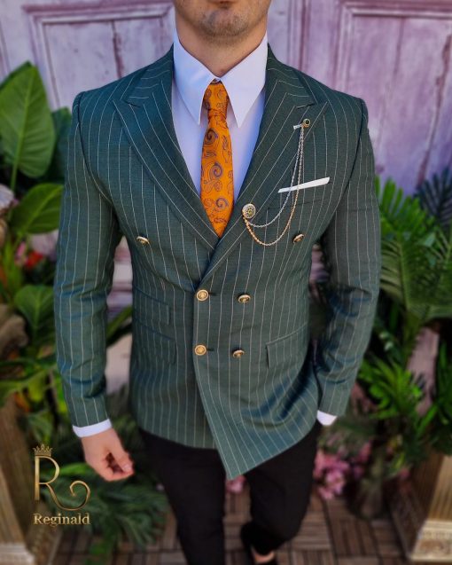 Sacou de bărbați verde in dungi, Slim Fit, double breasted – SC803