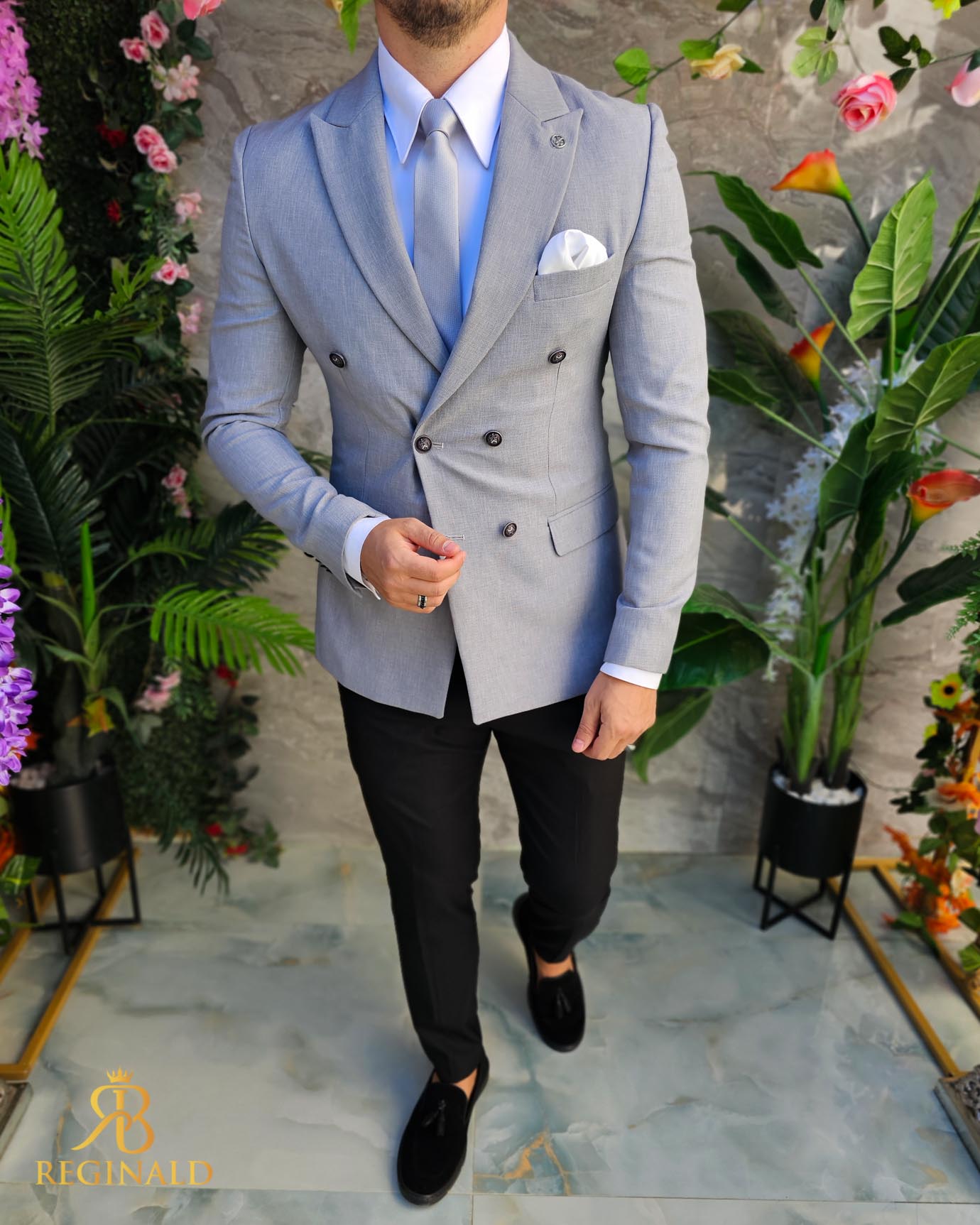 În general, un sacou de bărbați slim fit cu prindere într-un singur nasture poate fi purtat cu o cămașă elegantă și pantaloni asortați, pentru un aspect elegant.