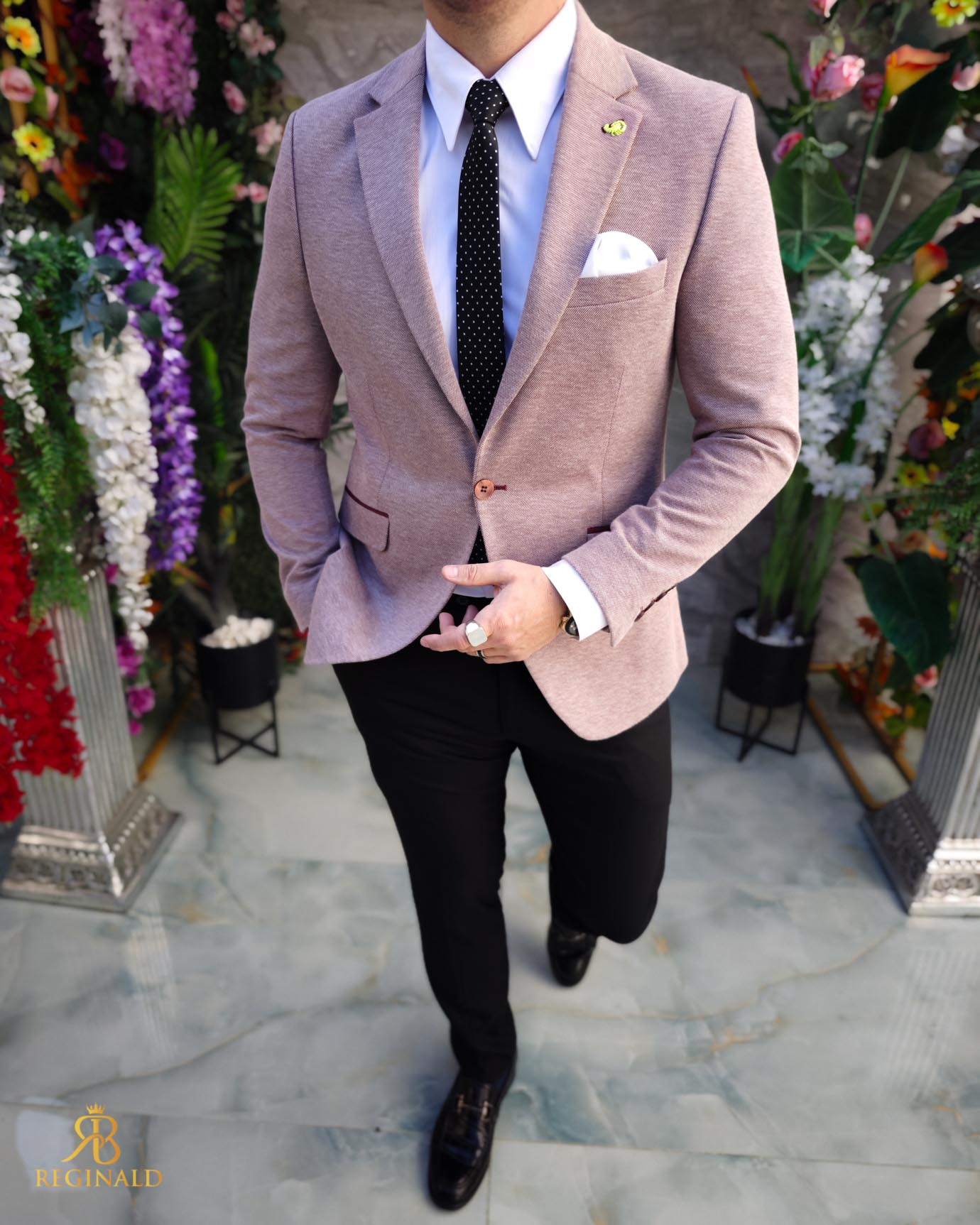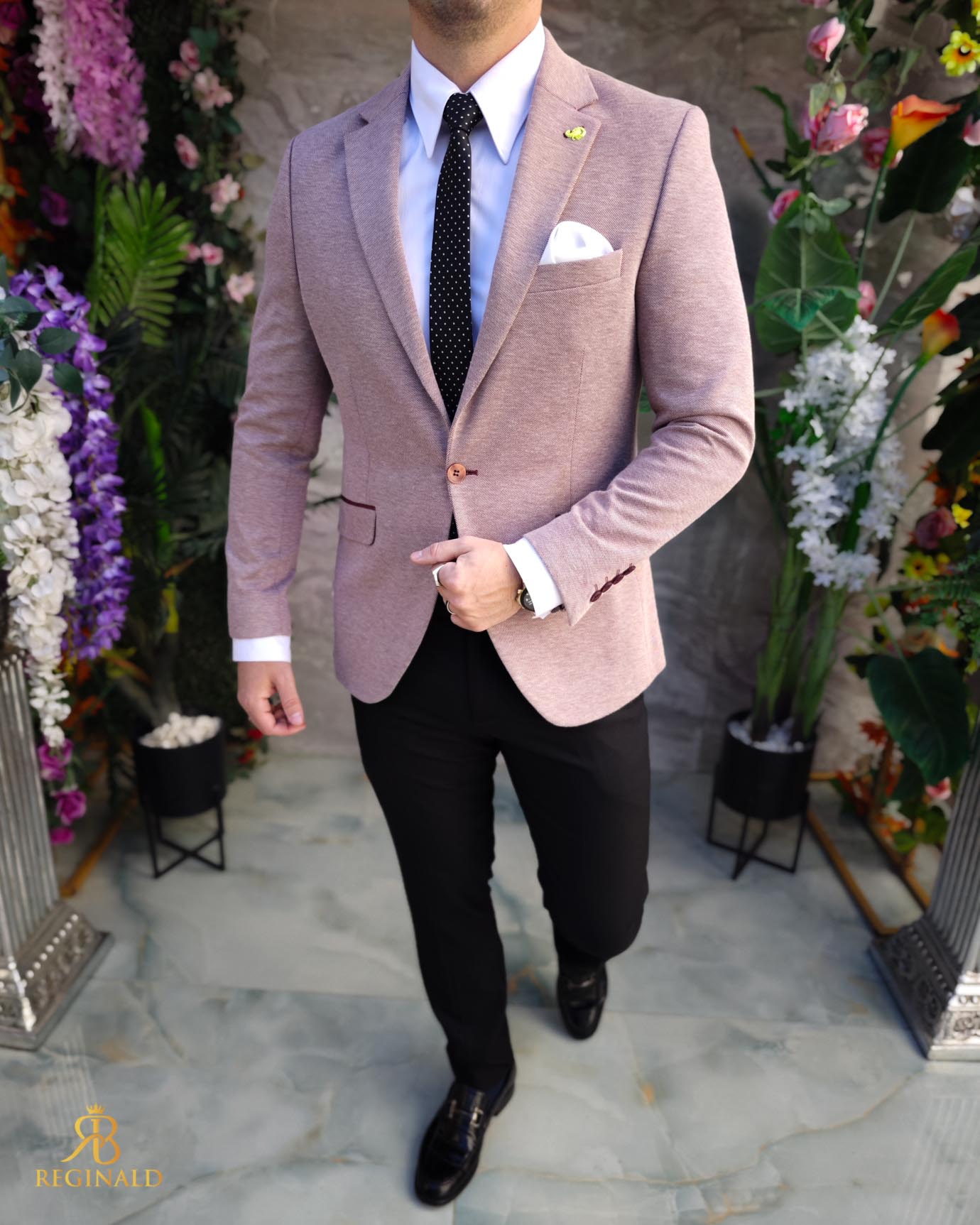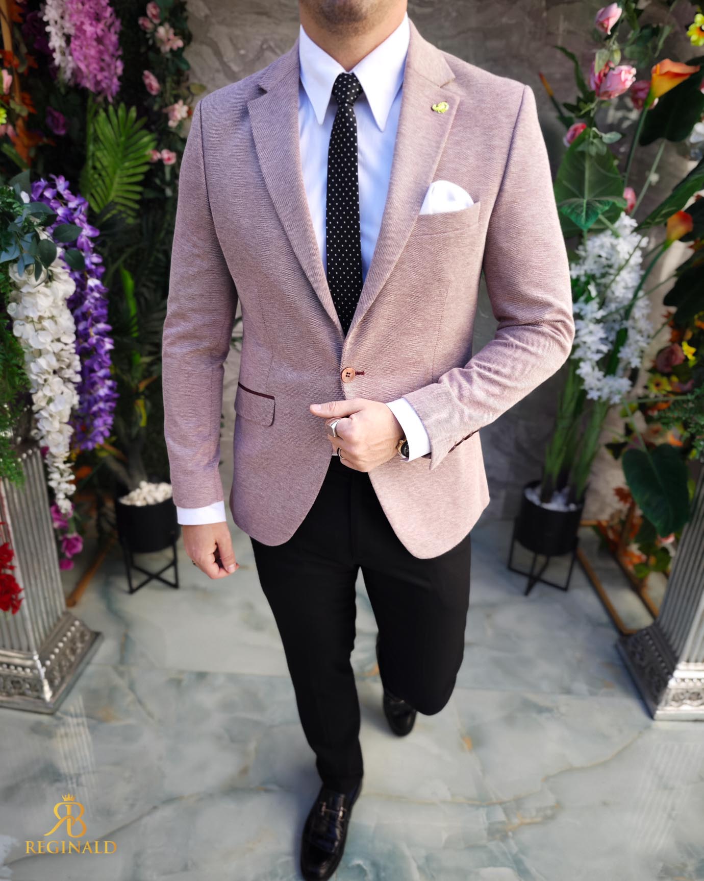 Sacou Roz texturat de bărbați, croiala Slim Fit- SC1039