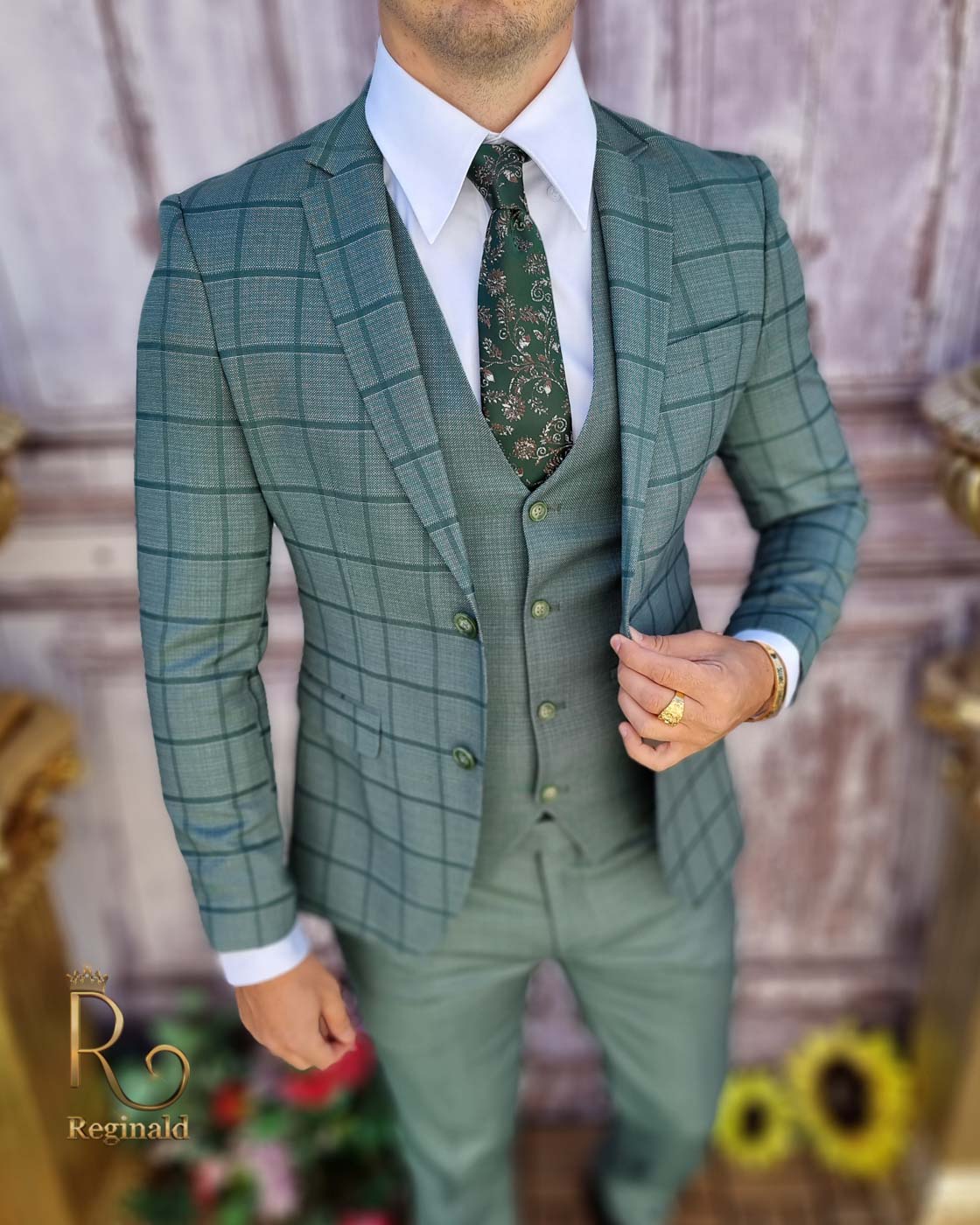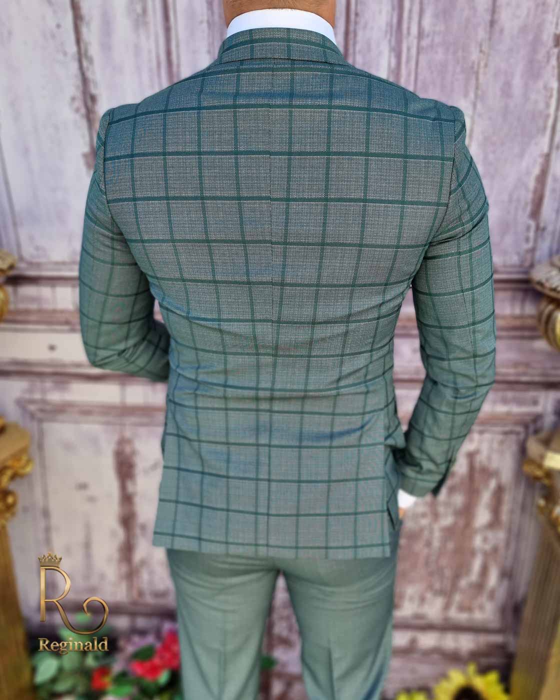 Sacou si vesta de bărbați, Slim Fit, Verde cu carouri – SC752