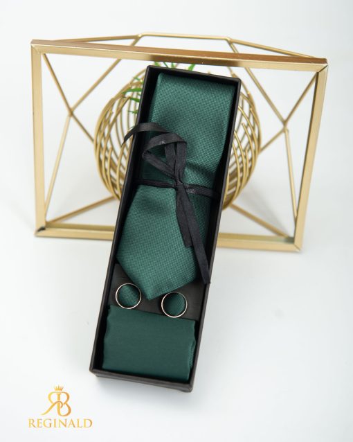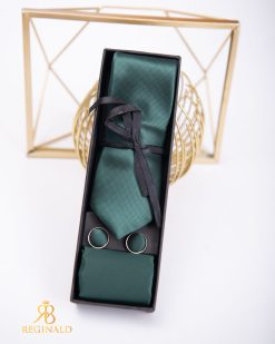 Set Cravata, batista si butoni verzi Hand Made