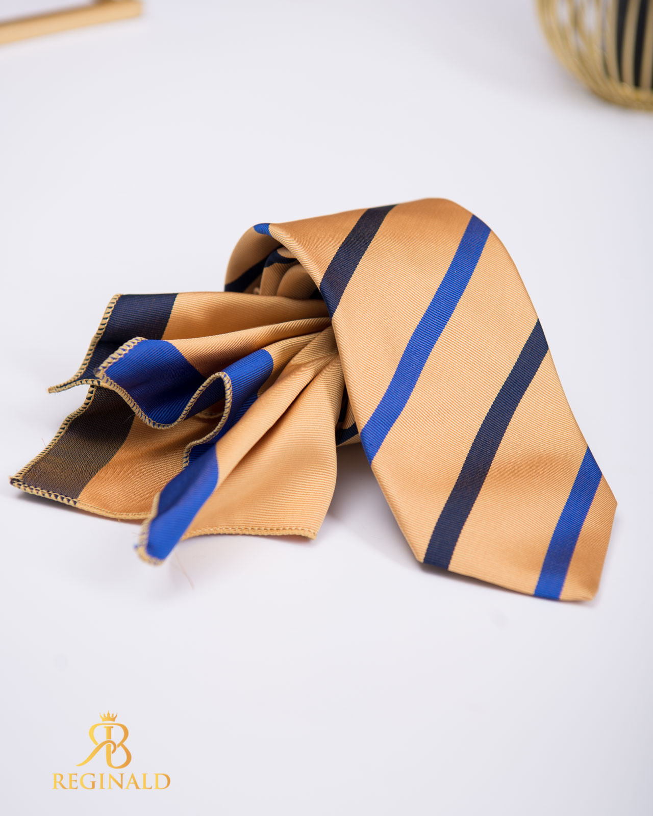 Set Cravata si batista auriu cu dungi – CV984
