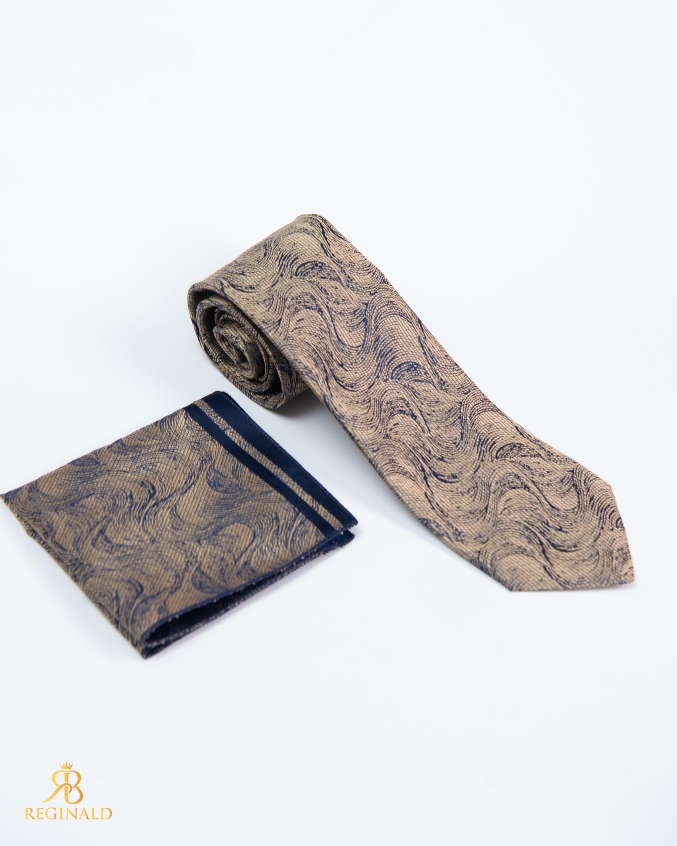 Set Cravata si batista, Auriu-deschis cu model - CV1089