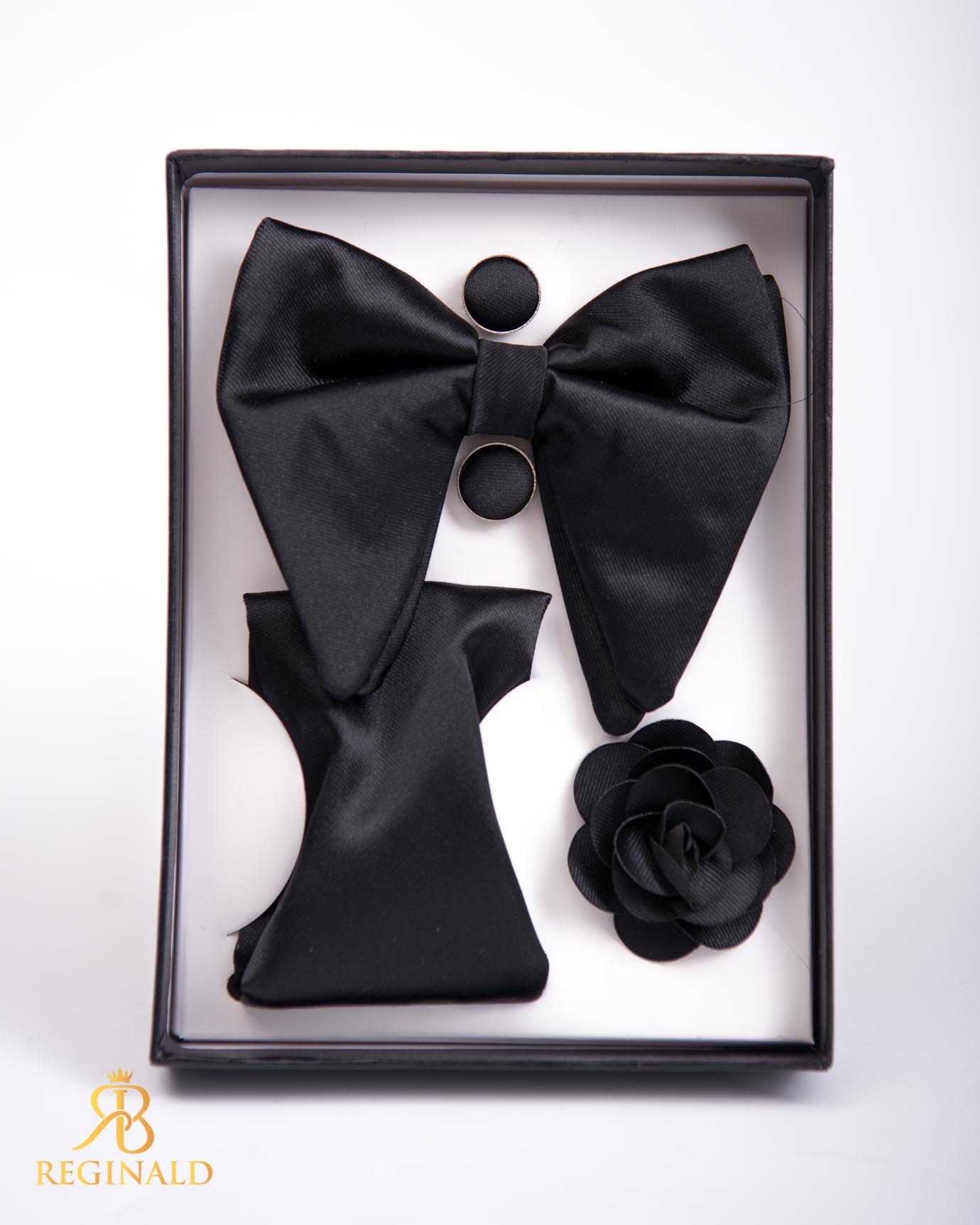 Setul este compus din papion, batista si butoni realizate din acelasi material