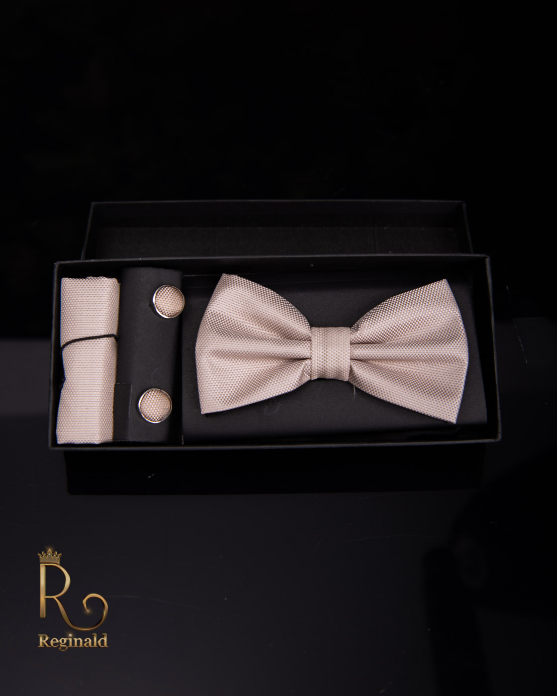 Set papion cu butoni si batista – culoare: bej – Cod PP244