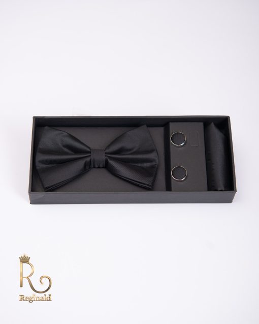 Setul este compus din papion, batista si butoni realizate manual, din acelasi material