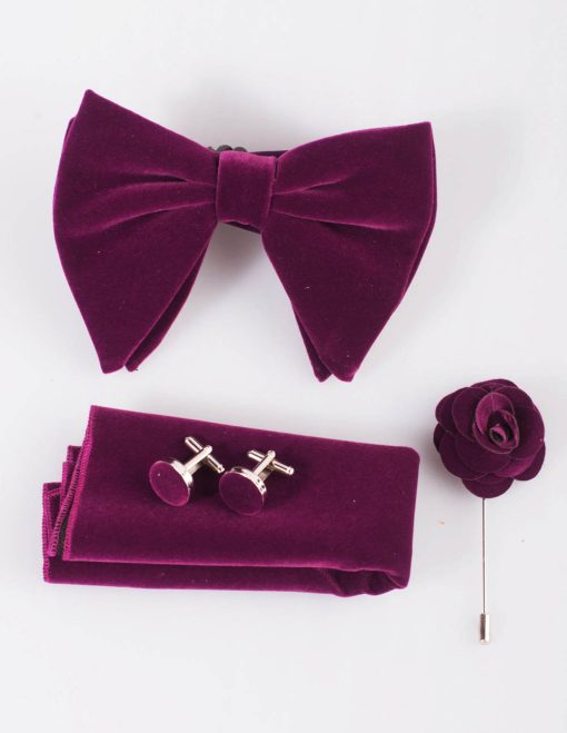 Set papion mov amplu cu butoni, brosa, batista – P91