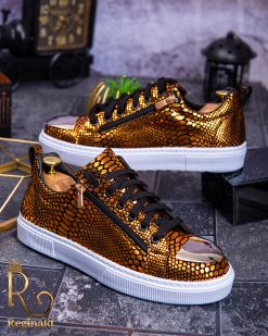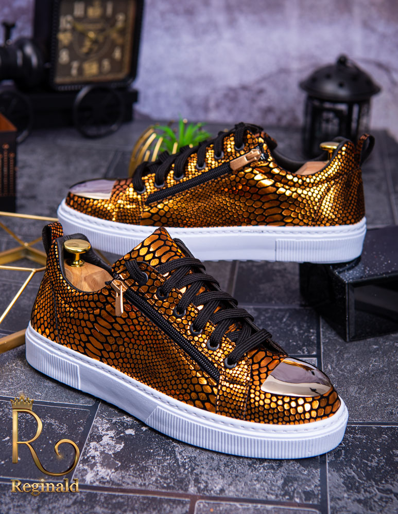 Teniși cu șiret, de bărbați, Death Skull, Piele șarpe aurie – AD211