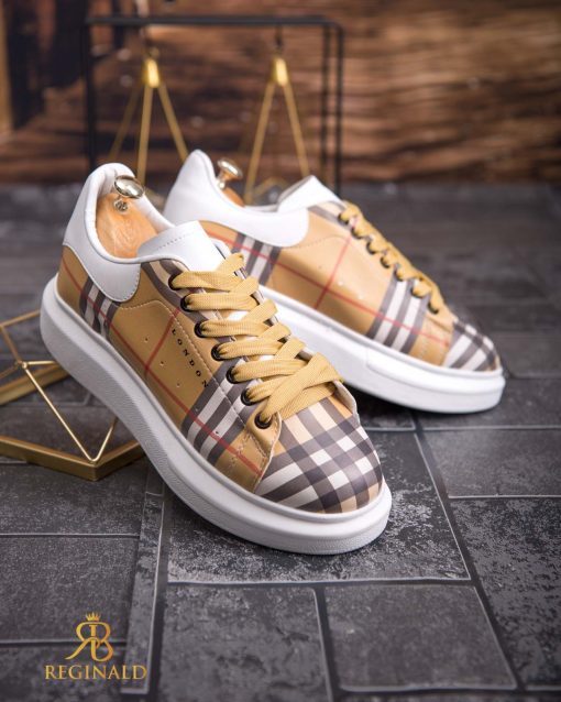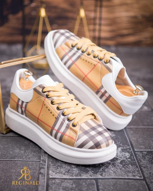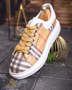 Tenisi de barbati cu talpa inalta alba, material din piele eco, talpa usoara din spuma, anti-aderenta.