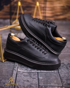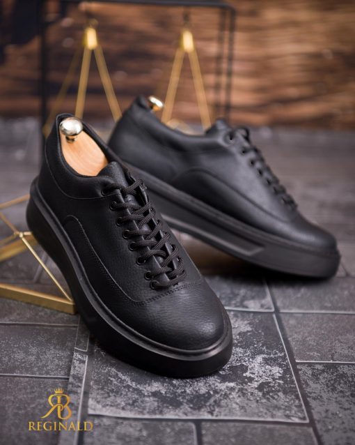 Tenisi de barbati cu talpa inalta alba, material din piele eco, talpa usoara din spuma, anti-aderenta.