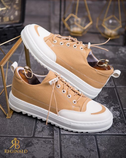 Tenisi de barbati cu talpa inalta alba, material din piele eco, talpa usoara din spuma, anti-aderenta.