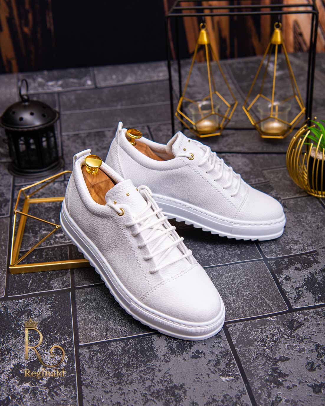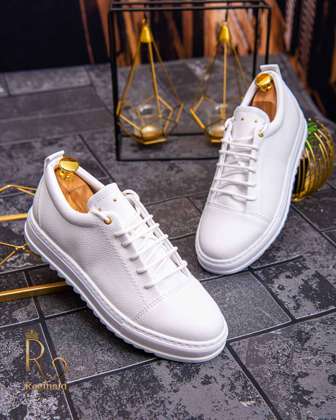 Tenisi de barbati cu talpa inalta alba, material din piele eco, talpa usoara din spuma, anti-aderenta.