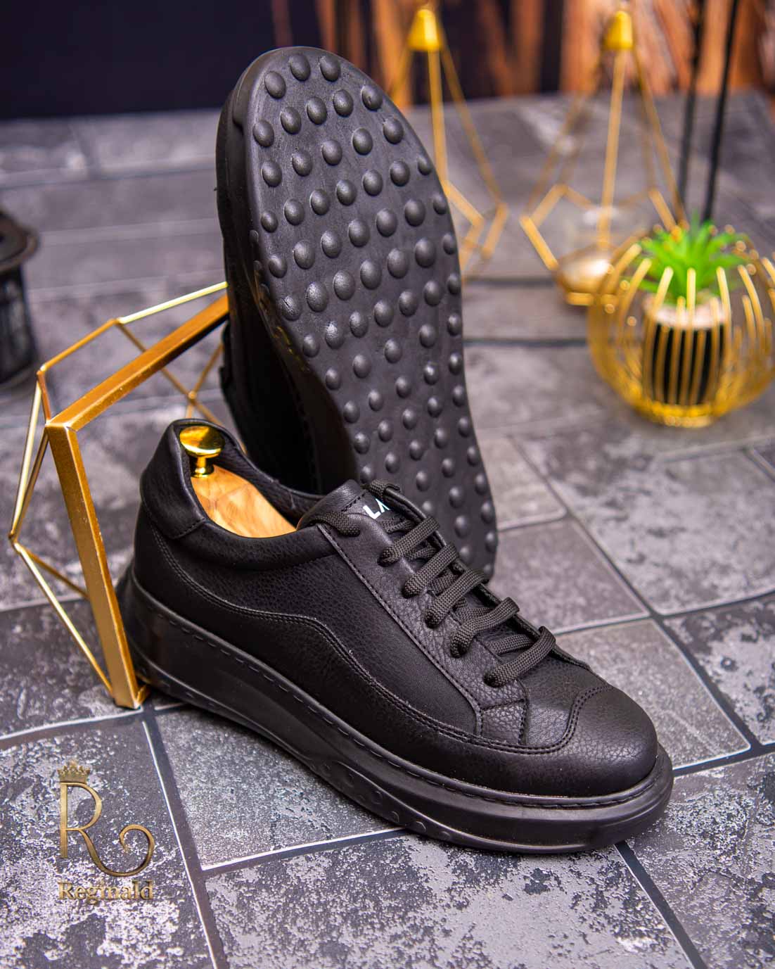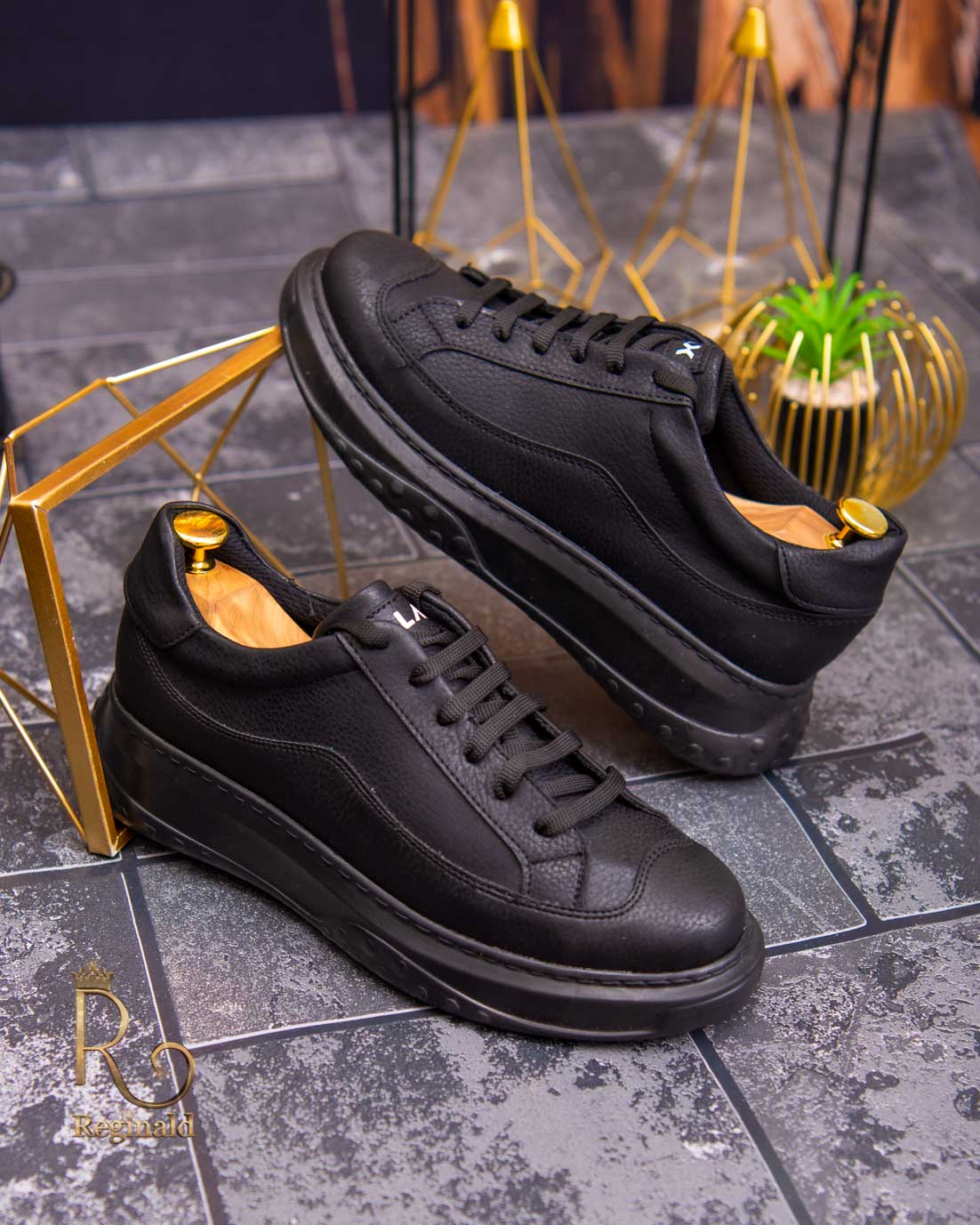 Teniși de bărbați cu talpa înaltă, Negri cu șiret – AD459
