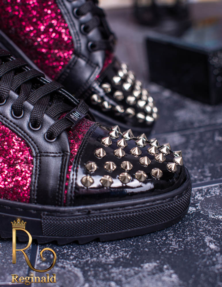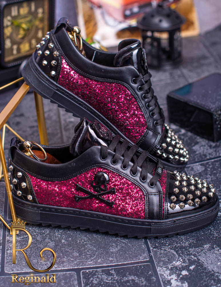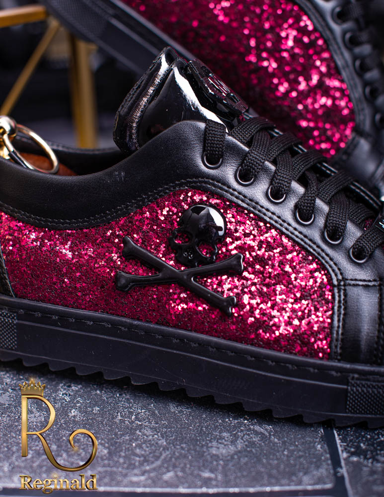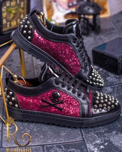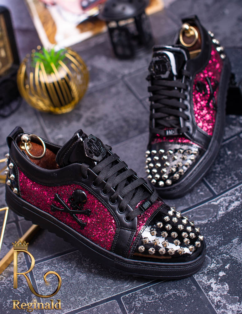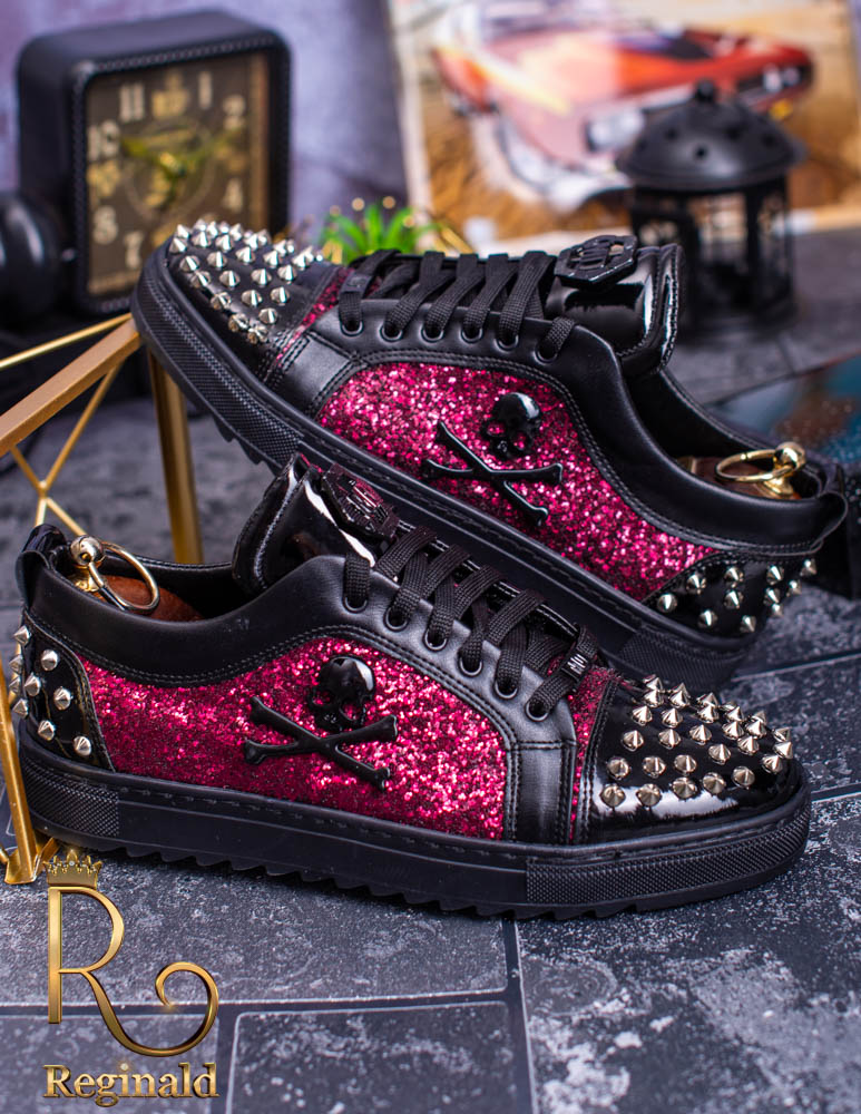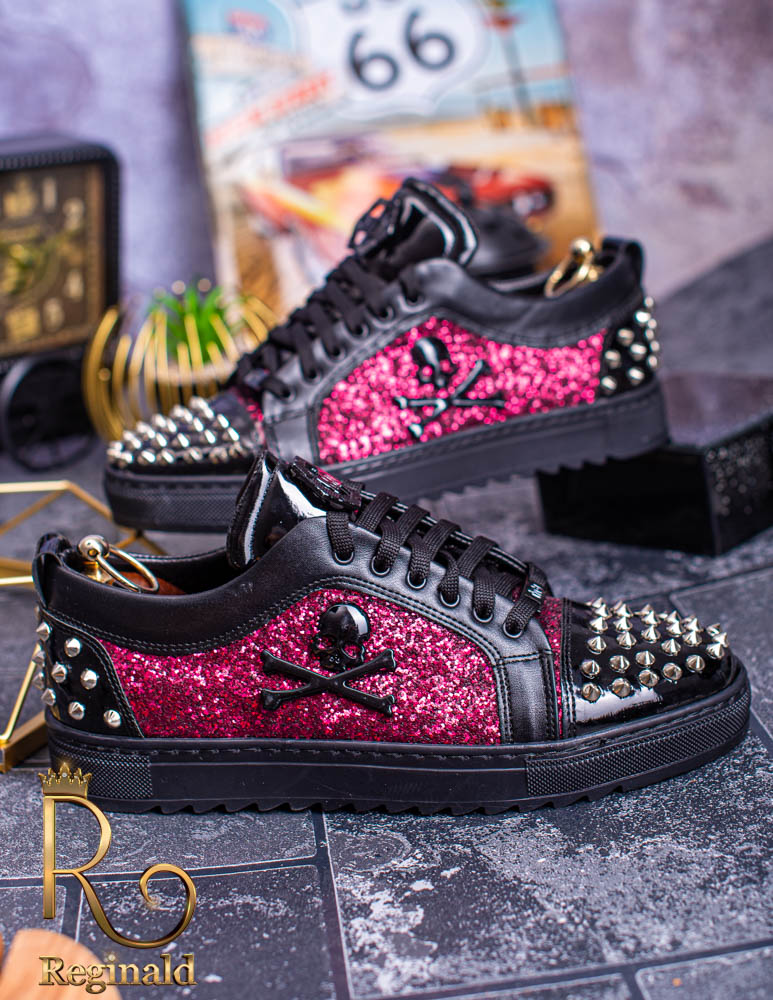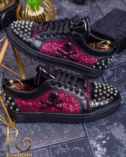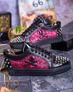 Tenisi de barbati cu siret. Decorati cu tinte , material din piele eco cu sclipici aplicat, talpa cusuta din cauciuc usor, anti-aderenta.