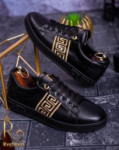 Tenisi de barbati cu siret. Decorati cu tinte , material din piele eco cu sclipici aplicat, talpa cusuta din cauciuc usor, anti-aderenta.