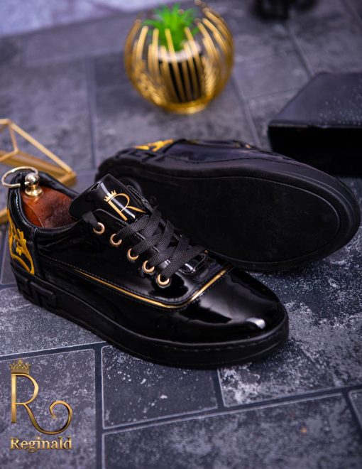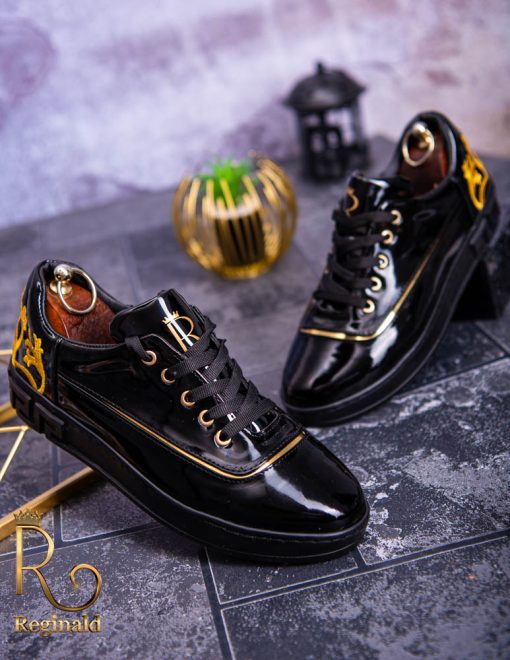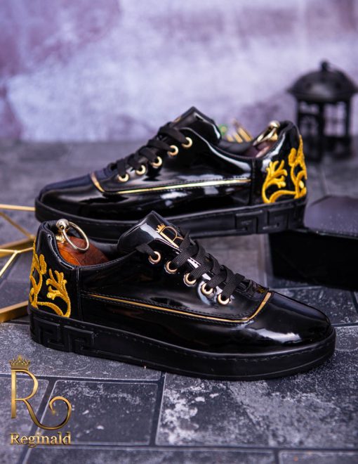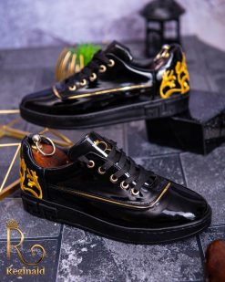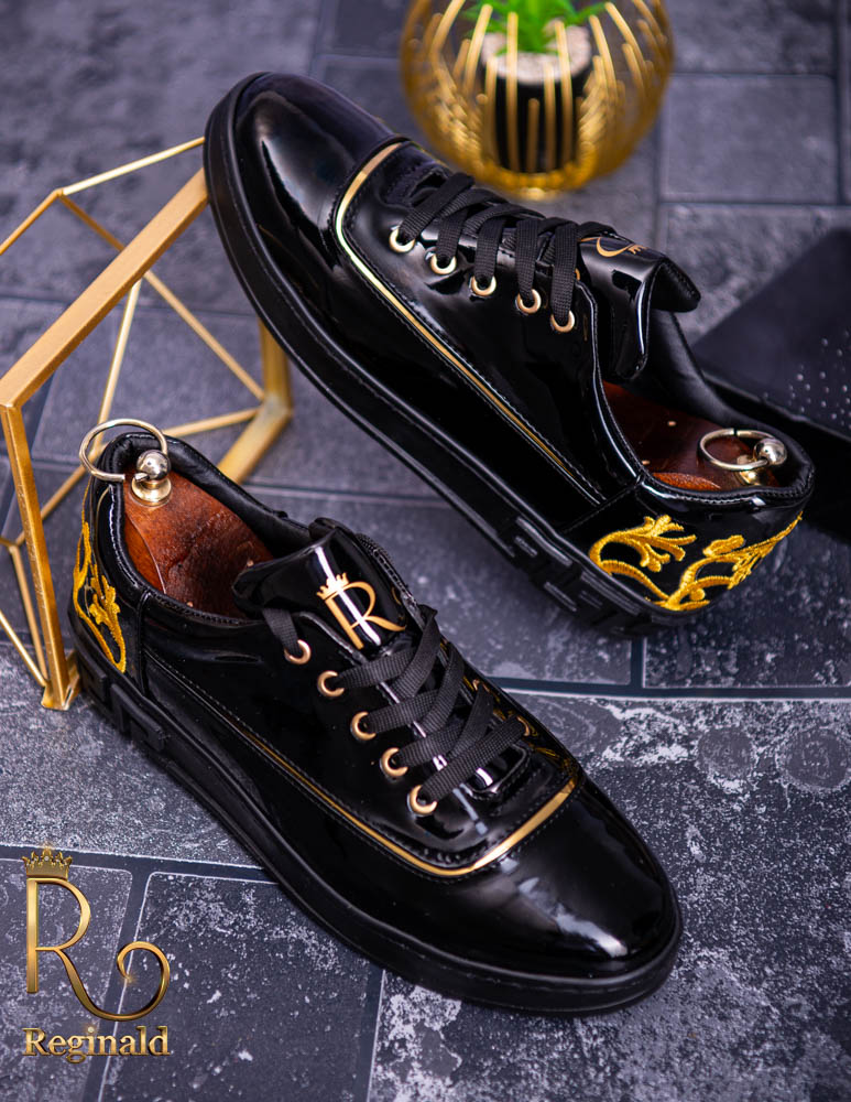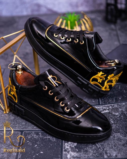 Tenisi Reginald de barbati realizati manual din piele eco si material cu imprimeu de calitate