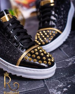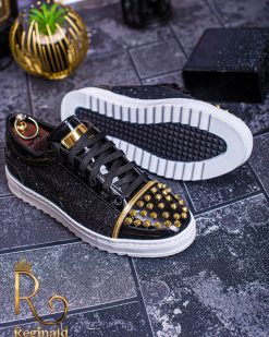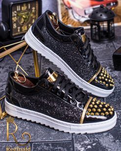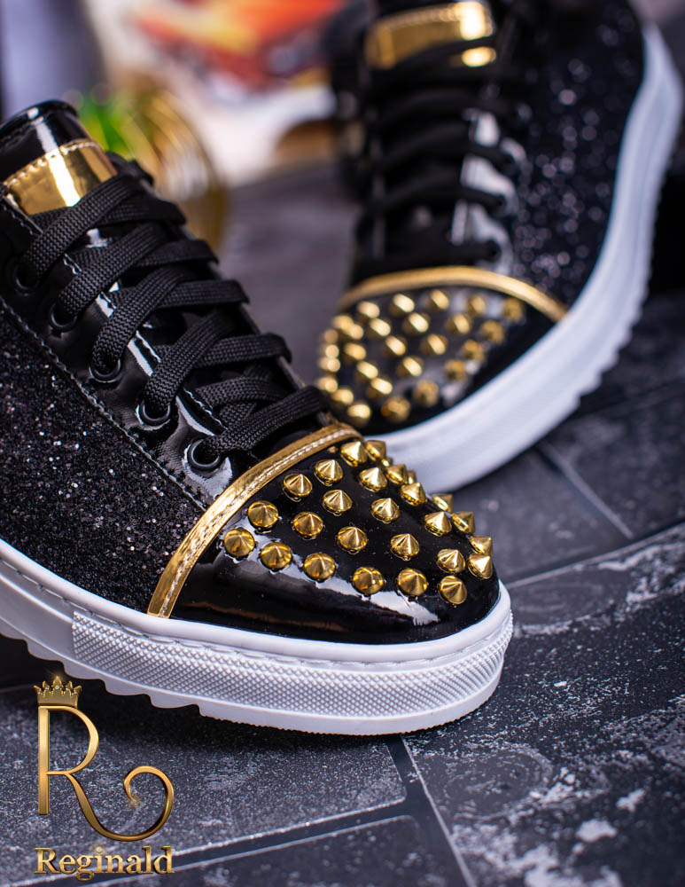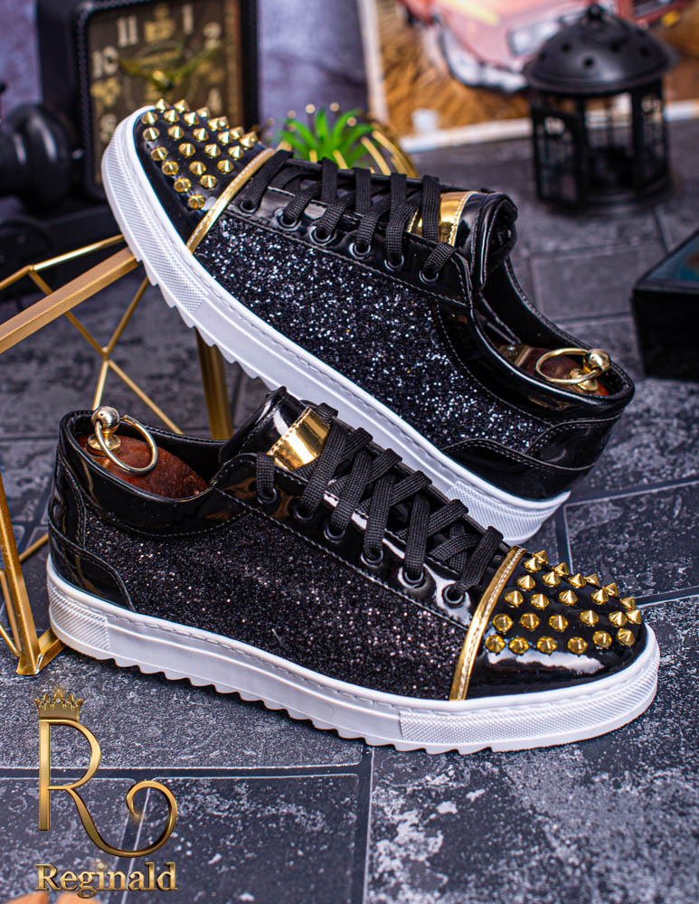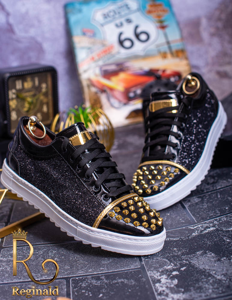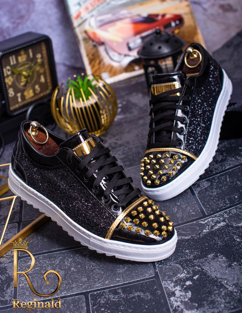 Tenisi de barbati cu siret. Decorati cu tinte , material din piele eco cu sclipici aplicat, talpa cusuta din cauciuc usor, anti-aderenta.