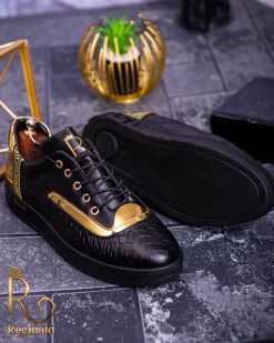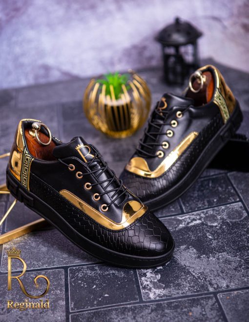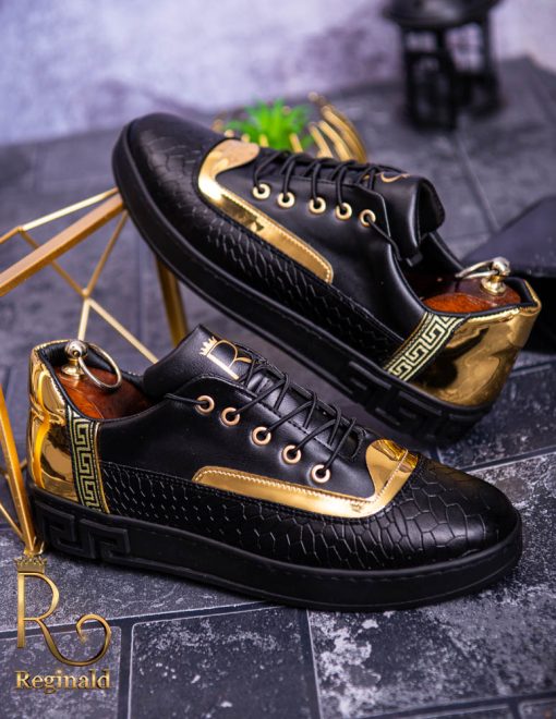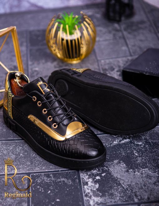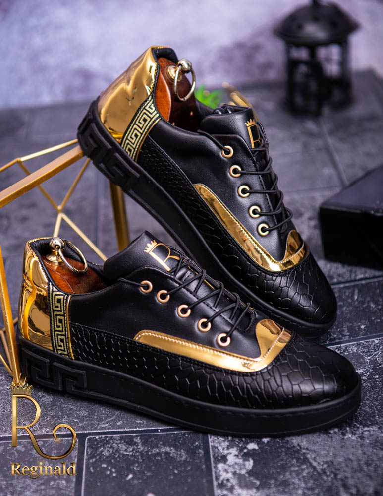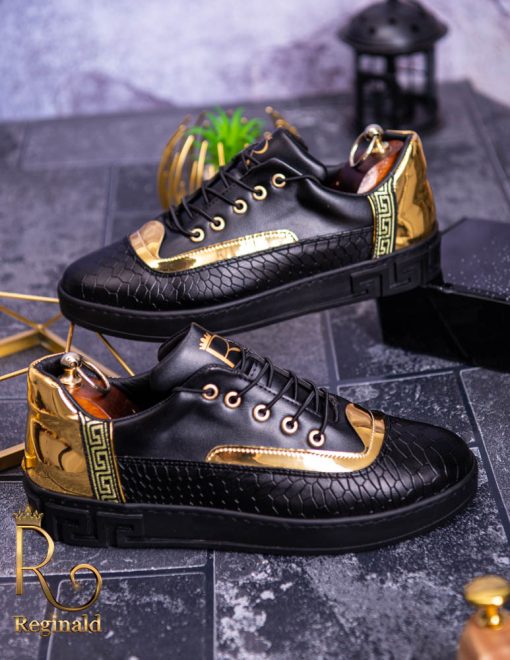 Tenisi Reginald de barbati realizati manual din piele eco si material cu imprimeu de calitate