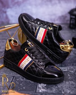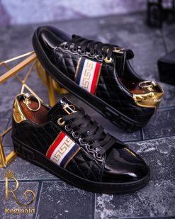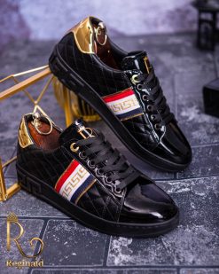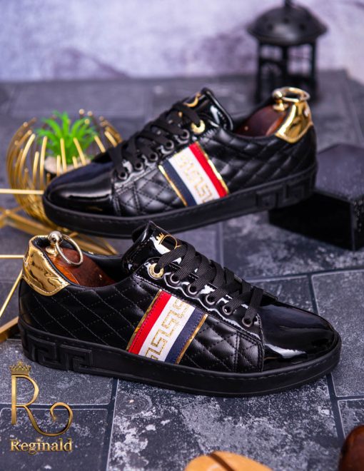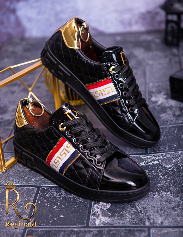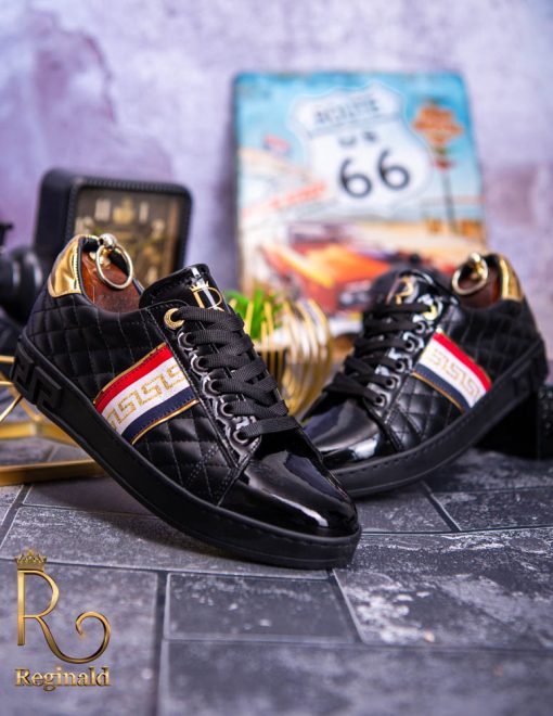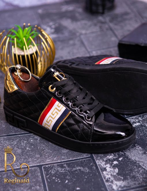 Tenisi Reginald de barbati realizati manual din piele eco si material cu imprimeu de calitate