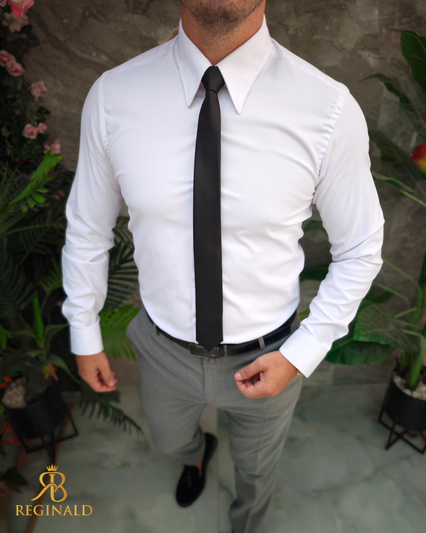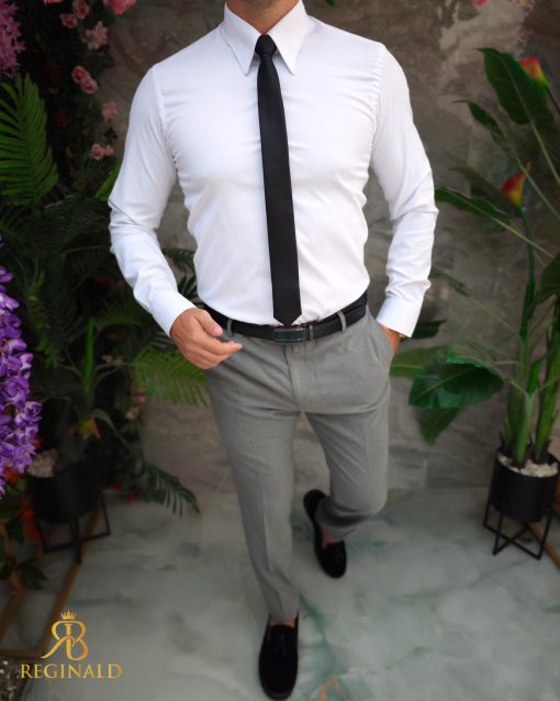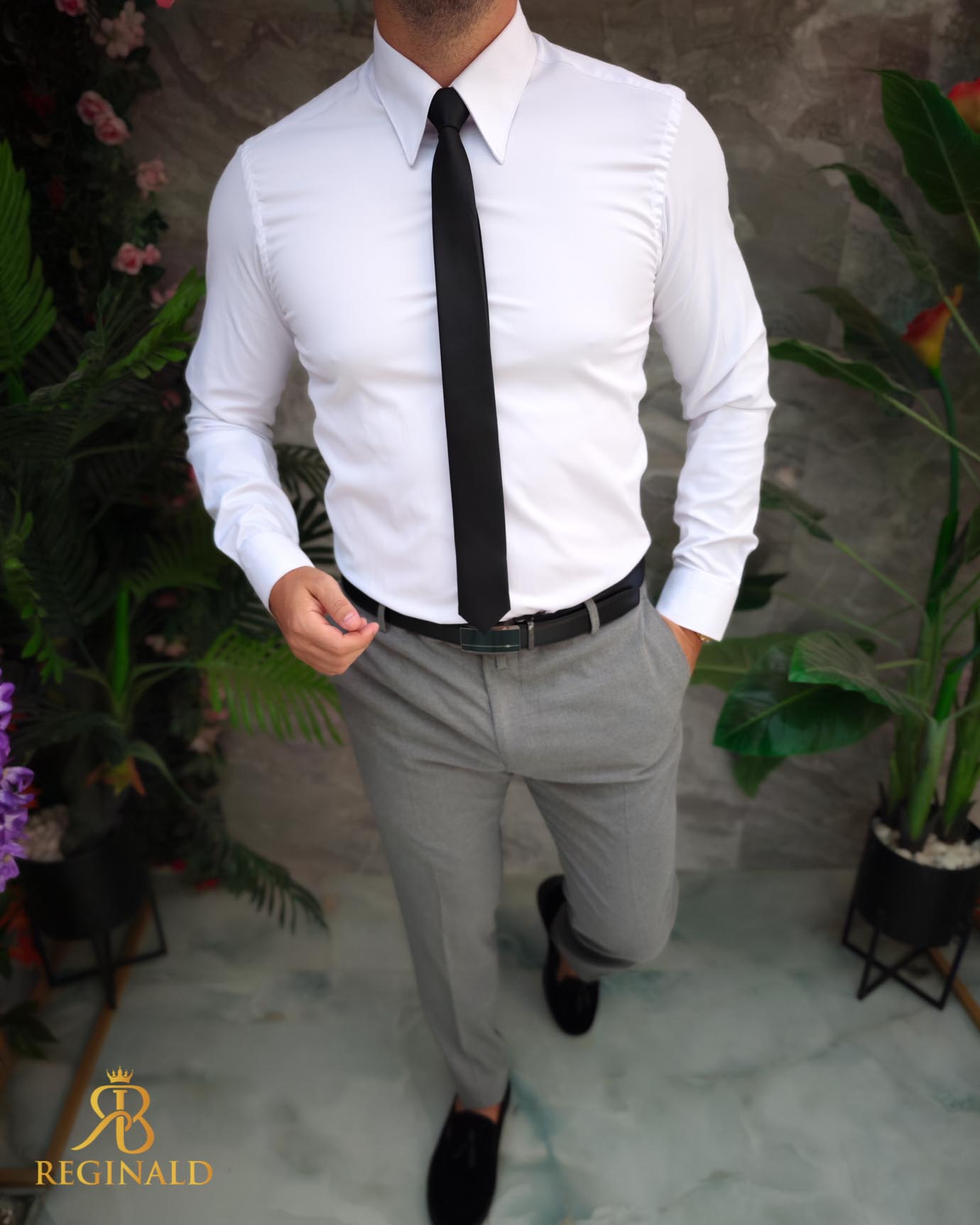 Tinuta „Reginald” de barbati smart casual este o combinatie eleganta si relaxata, perfecta pentru ocazii normale, tinute ideale pentru scoala, liceu, banchet, balul bobocilor, chiar si botez. Aceasta tinuta emana rafinament si stil, evidentiaza atentia la detalii si arata incredibil de bine.