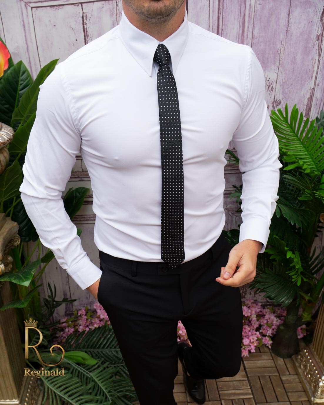 Tinuta „Reginald” de barbati smart casual este o combinatie eleganta si relaxata, perfecta pentru ocazii normale, tinute ideale pentru scoala, liceu, banchet, balul bobocilor, chiar si botez. Aceasta tinuta emana rafinament si stil, evidentiaza atentia la detalii si arata incredibil de bine.