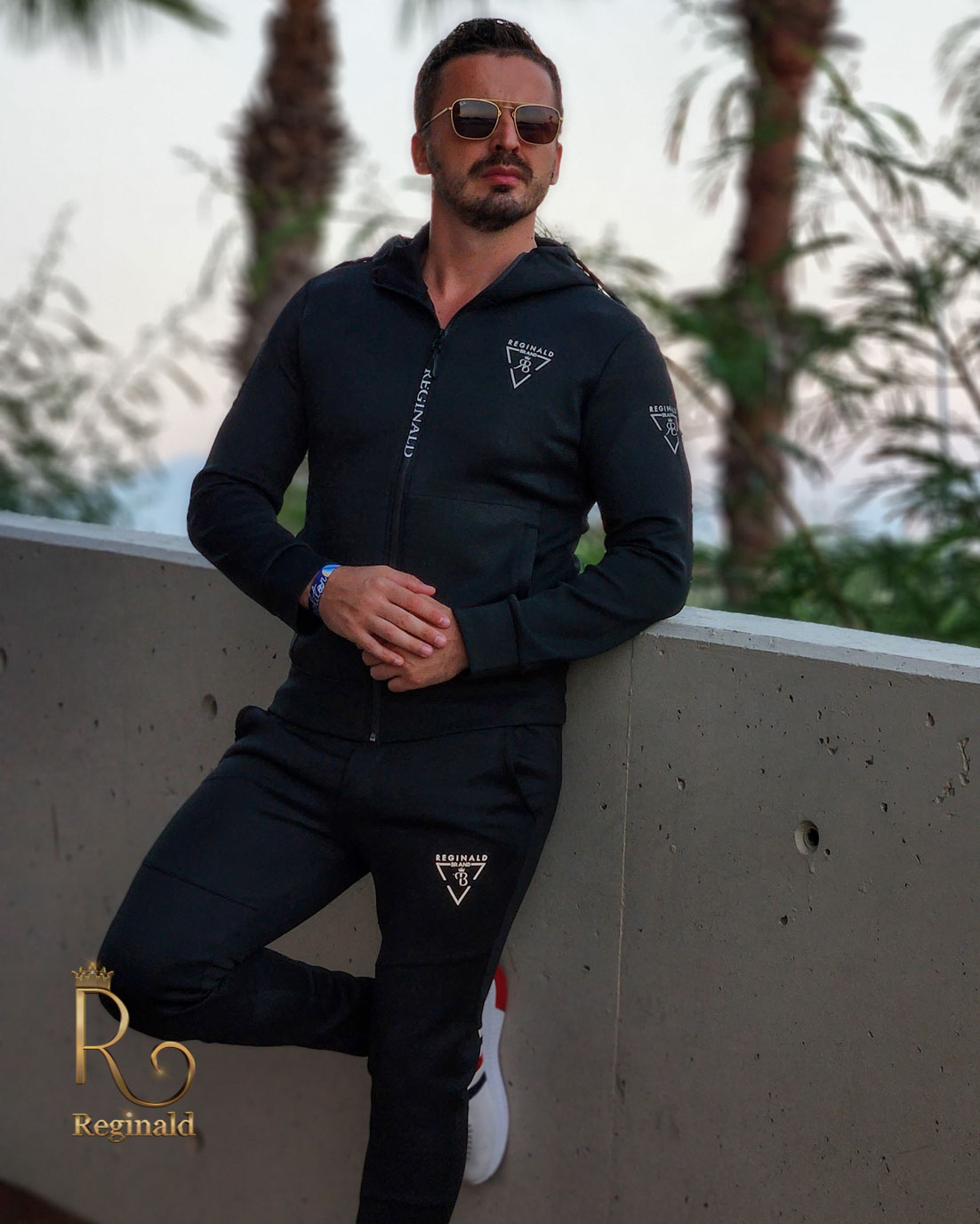 - Bluza cu croiala slim-fit, bata elastica in talie, gluga cu snur negru, prindere cu fermoar personalizat, logo Reginald reflectorizant