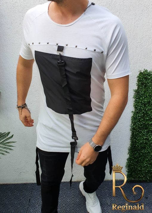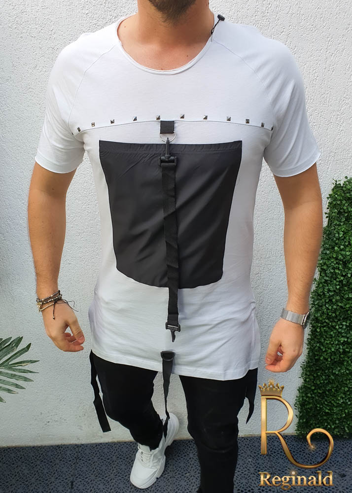 Tricou barbati slim fit lung,alb cu bretele Street Style 2020