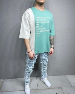 Tricou barbati slim fit lung, Alb cu bretele Street Style
